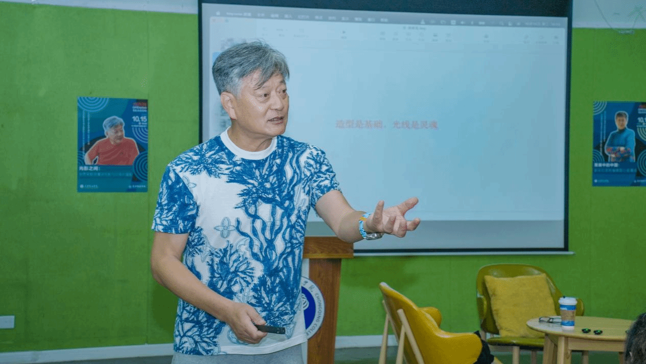 沙龙伊始,金贵荣教授以《光影之间:电影与纪录片摄影》为题,结合其多年的摄影与导演经验,从视觉语言、光影控制到影像叙事,层层剖析影像艺术的深层逻辑。他指出,在技术不断迭代的今天,摄影已不仅是记录现实的手段,更是建构视觉美学的创造性行为。金教授通过分析经典影片的镜头语言,阐释了光影如何成为叙事的情感载体,强调"摄影师要用光写作,用影抒情",在数字时代更应坚守影像的本体价值。