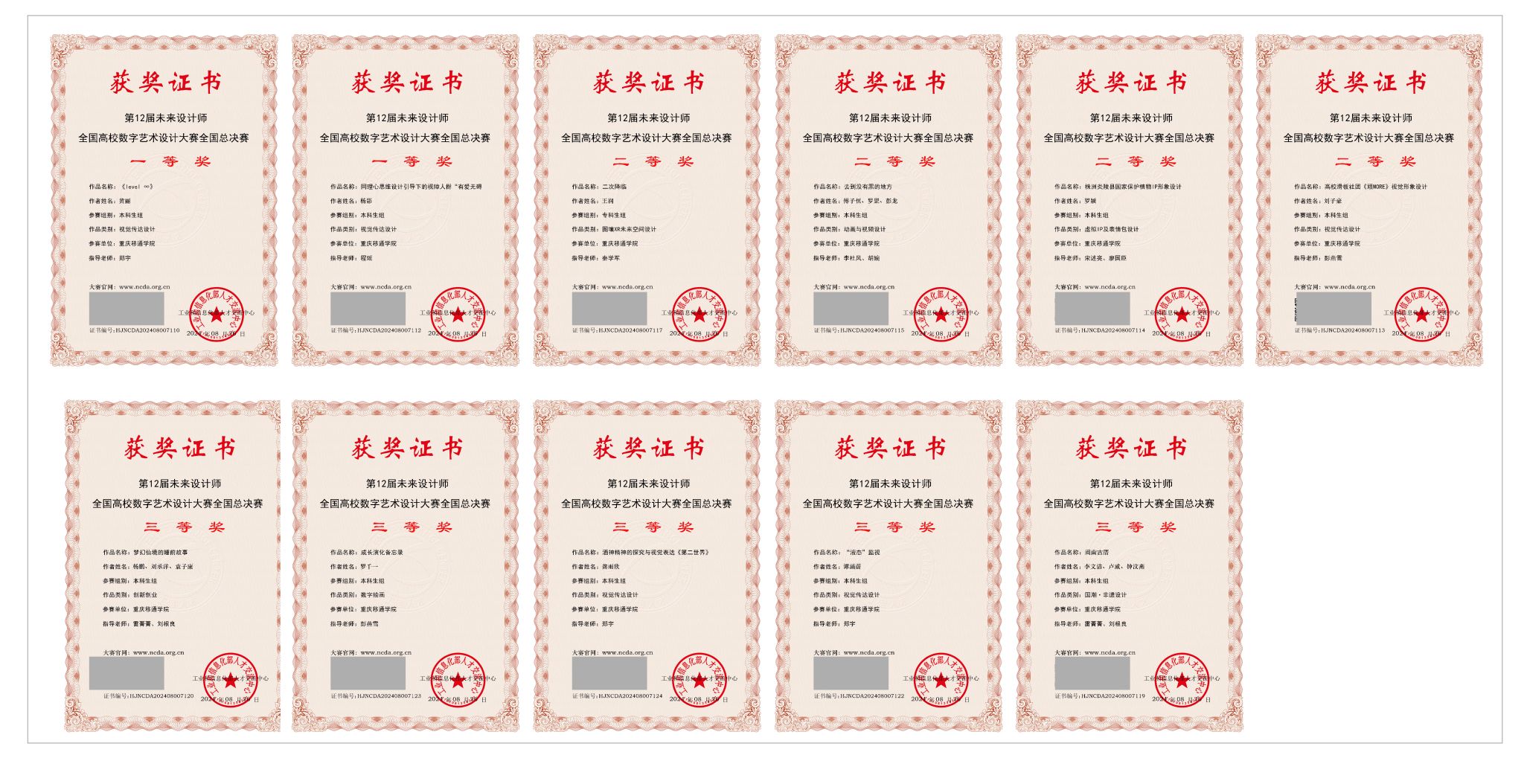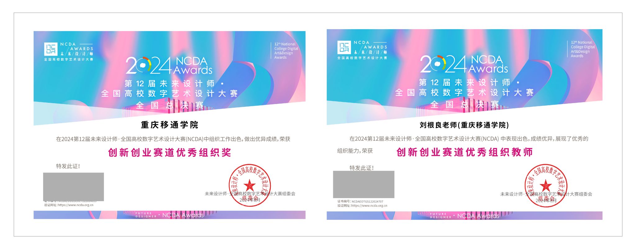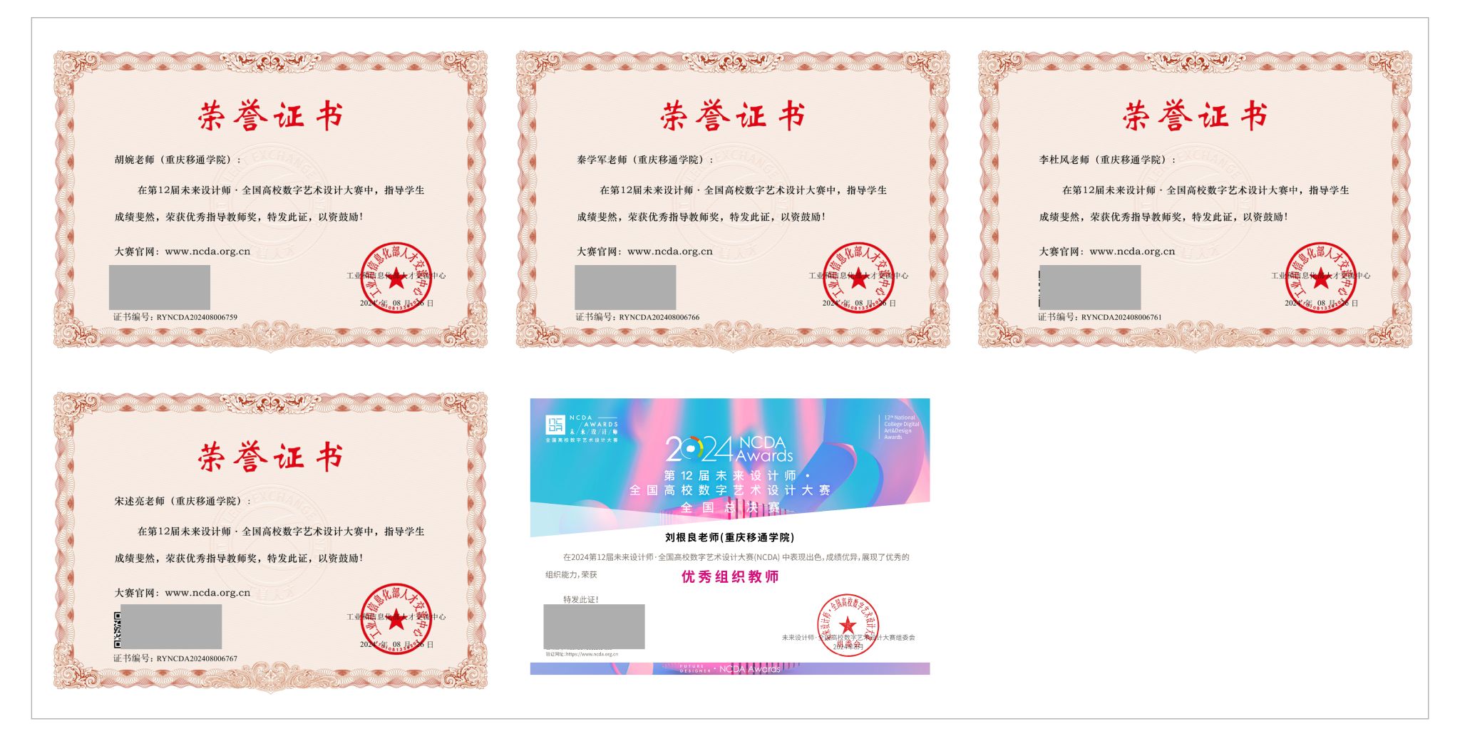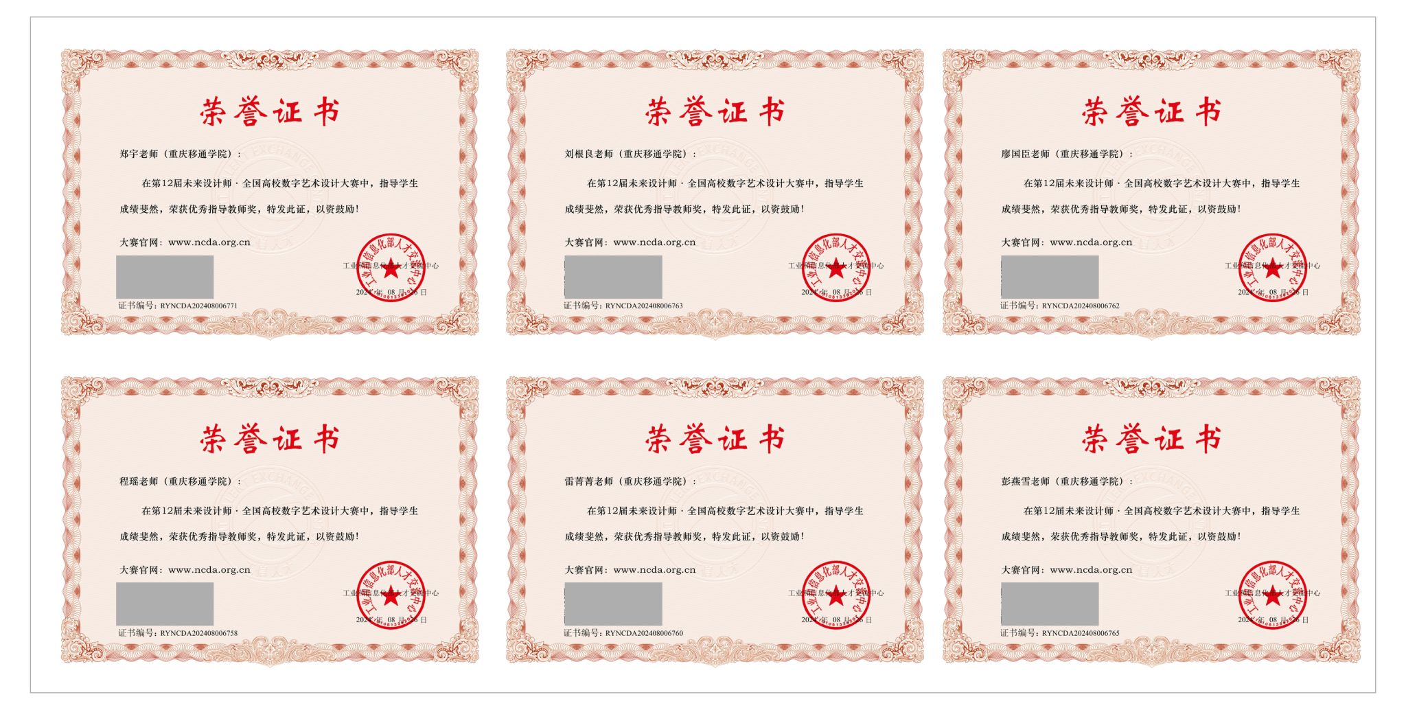 在第12届赛事中,重庆移通学院荣获 “创新创业赛道优秀组织奖”称号,教师刘根良荣获“创新创业赛道优秀组织教师”“优秀组织教师”称号。教师郑宇、程瑶、彭燕雪、宋述亮、廖国臣、李杜风、胡婉、秦学军、雷菁菁、刘根良荣获“优秀指导教师”称号。