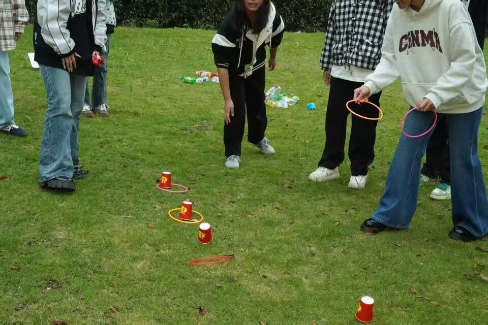 “民俗之美,藏在烟火气的玩乐里。”绿意盎然的草坪上,几只印着吉祥纹样的红纸杯静静摆放,彩色圆环在参与者指尖灵活翻转,随即带着弧线飞落。当圆环精准套住纸杯的刹那,现场或响起轻快的欢呼,或漾起会心的微笑——这一幕既是对童年街头套环小趣的生动复刻,更是将那份植根于市井的民俗欢愉,以鲜活可感的方式传递给当下的人们,让传统游戏的质朴温情,在新时代的休闲时光里依旧熠熠生辉。