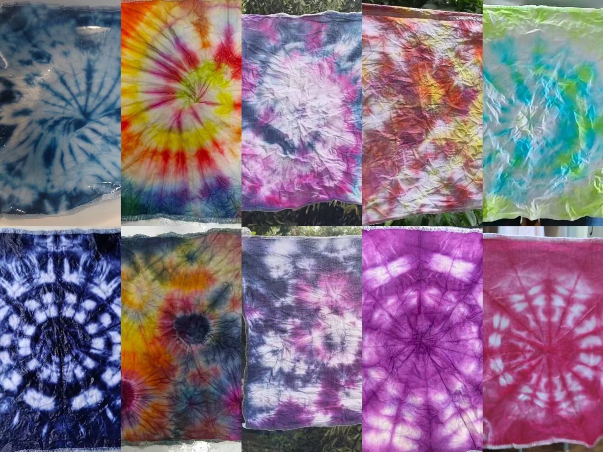 游戏环节结束后,最受期待的全员扎染体验正式开启。无需等待 “胜利”,每一位参与者都围坐于染料旁,在扎染准备组的指导下开 启创作。“扎结之巧,染色之妙”,成员们或折叠棉布成方胜纹,或用皮筋捆出螺旋花样,再将布料浸入彩色染料——当白色布料逐渐晕染出深浅不一的彩纹,有人惊喜于“冰裂纹”的自然灵动,有人沉醉于“扎花”的对称美感,真切体会到非遗扎染“每一件都是孤品”的独特魅力。正如非遗传承人所言:“扎染的美,在于人与自然的合作,在于每一次染色都充满未知的惊喜。”这份亲手创作的体验,让成员们对“传统技艺”的认知从书本走向实践,更懂得守护非遗的意义。