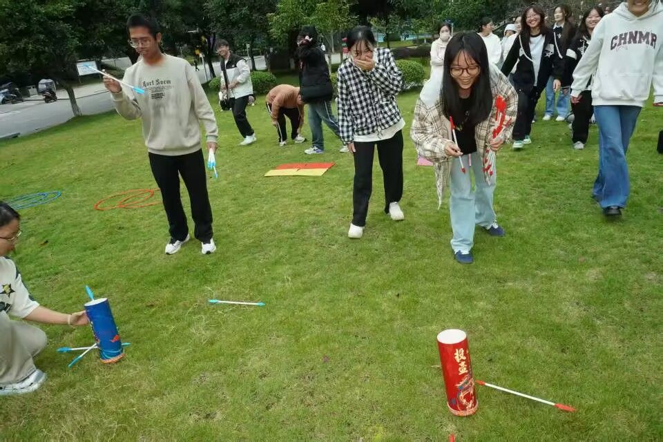 “投壶者,射之细也。”作为古代宴饮时的传统礼仪游戏,“投壶”环节让成员们沉浸式感受古人雅趣。大家手持箭矢,屏息凝神瞄准壶口,箭矢入壶的清脆声响此起彼伏。有人一击即中喜形于色,有人反复调整姿势不言弃——在这一投一掷间,成员们不仅体验了游戏的快乐,更触摸到了传统礼仪中“礼”与“乐”交融的文化脉络,让千年古趣在校园中鲜活重现。