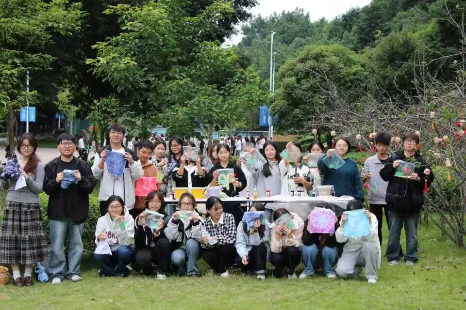 活动尾声,全体成员手持各自的扎染作品,在写有活动主题的横幅下合影,各色交织的布料在阳光下格外耀眼,定格下与传统文化相遇的珍贵瞬间。后勤组迅速清理场地,确保双子湖恢复整洁;宣传组整理活动照片与视频,记录下成员们的笑脸与创作瞬间;团支部收集每位参与者的反馈,为后续传统文化活动积累经验。