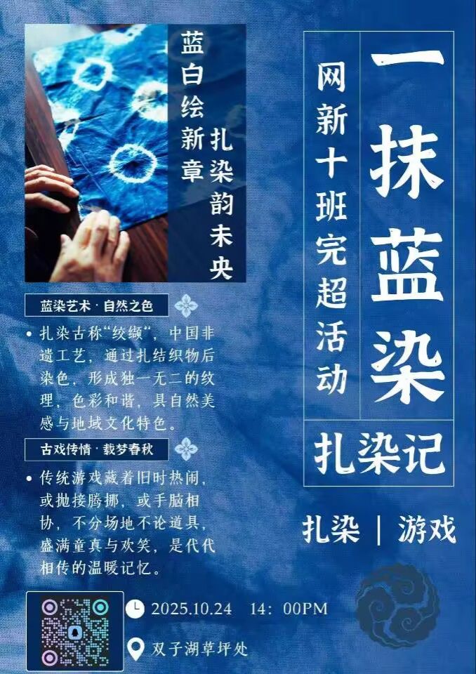 此次完超活动,21142510团支部以“全员参与”打破非遗体验的“门槛”,用六大传统游戏搭建起传统文化与青年群体的桥梁。从老游戏的沉浸式体验到扎染技艺的亲手实践,每一位成员都成为传统文化的“体验者”与“传播者”。正如习近平总书记所说:“中华优秀传统文化是中华民族的精神命脉”,支部以青春之力为非遗注入新活力,让扎染这门古老技艺在年轻一代的热爱中,真正实现“韵未央”的传承与延续。