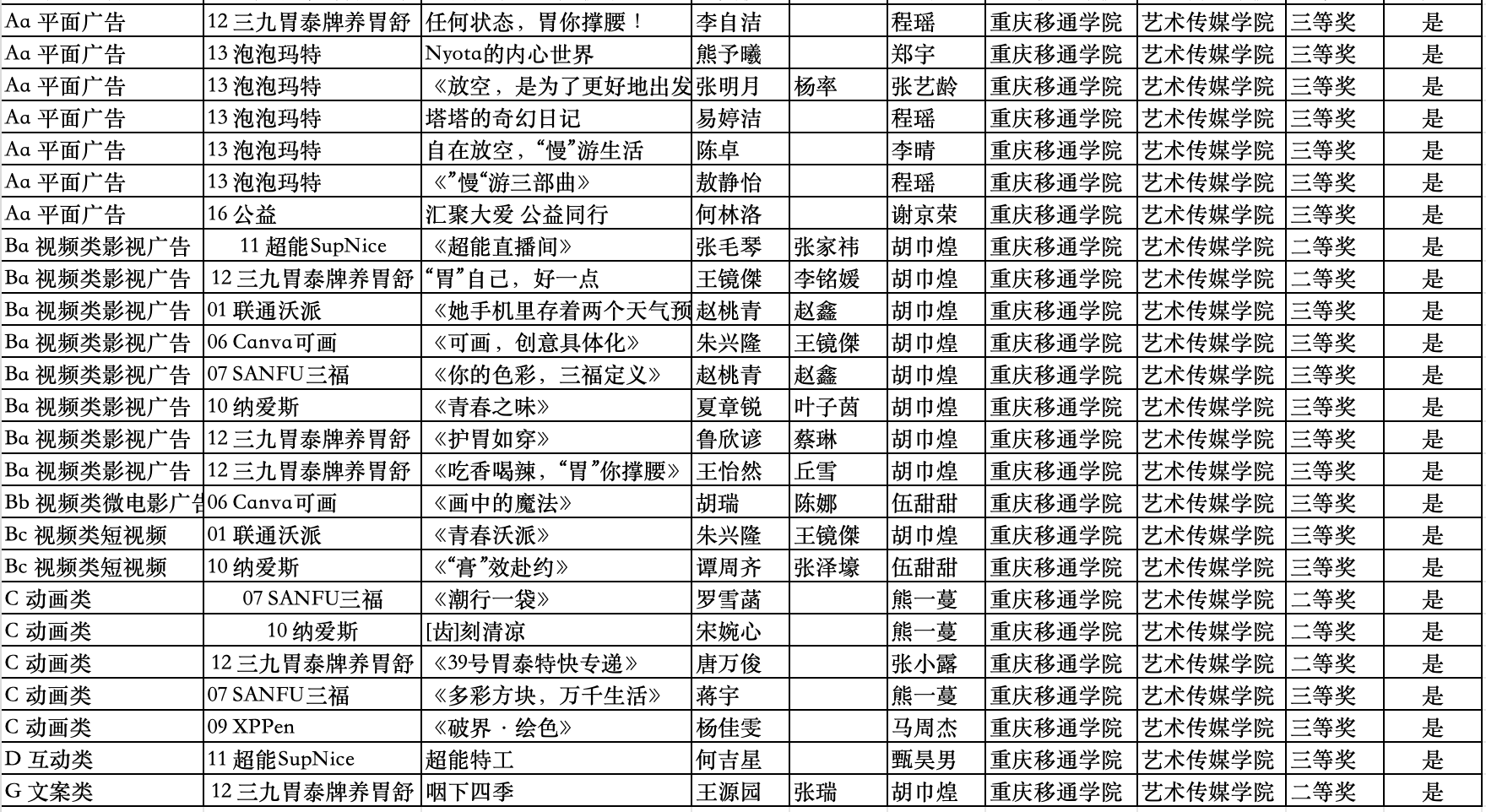 作为全国规模最大、覆盖最广、影响力最强的大学生广告艺术赛事之一,本届大广赛吸引了全国数千所高校百万学子参赛。我校数字媒体艺术专业学子在平面广告、影视广告、微电影广告、短视频、动画、互动广告、文案等七大参赛类别中全面开花,实现了“品类全覆盖、等级多层次”的突破。