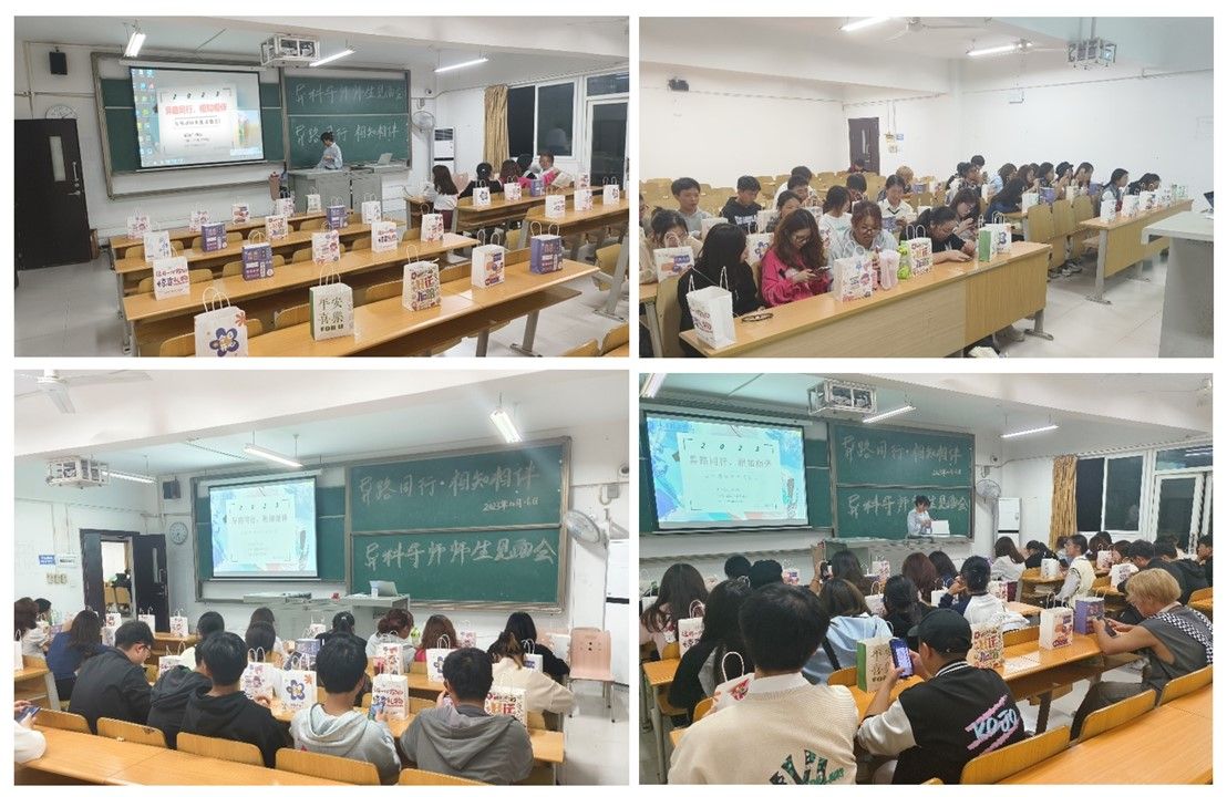 为了增进彼此间的了解,胡红琼老师首先向同学们进行了自我介绍,并结合自己的大学生活和求学经历与同学们进行分享交流。随后也请各位同学一一作了自我介绍,大家兴致勃勃地介绍了自己的家乡、兴趣爱好和选择自身专业的初衷,了解了各位同学的基本情况和兴趣爱好后,胡红琼老师与同学们围绕今后如何开展异科活动进行了深入交流,对未来的师生互动做出了简要规划,并对近期工作进行了安排。