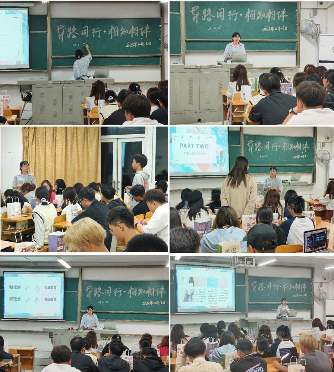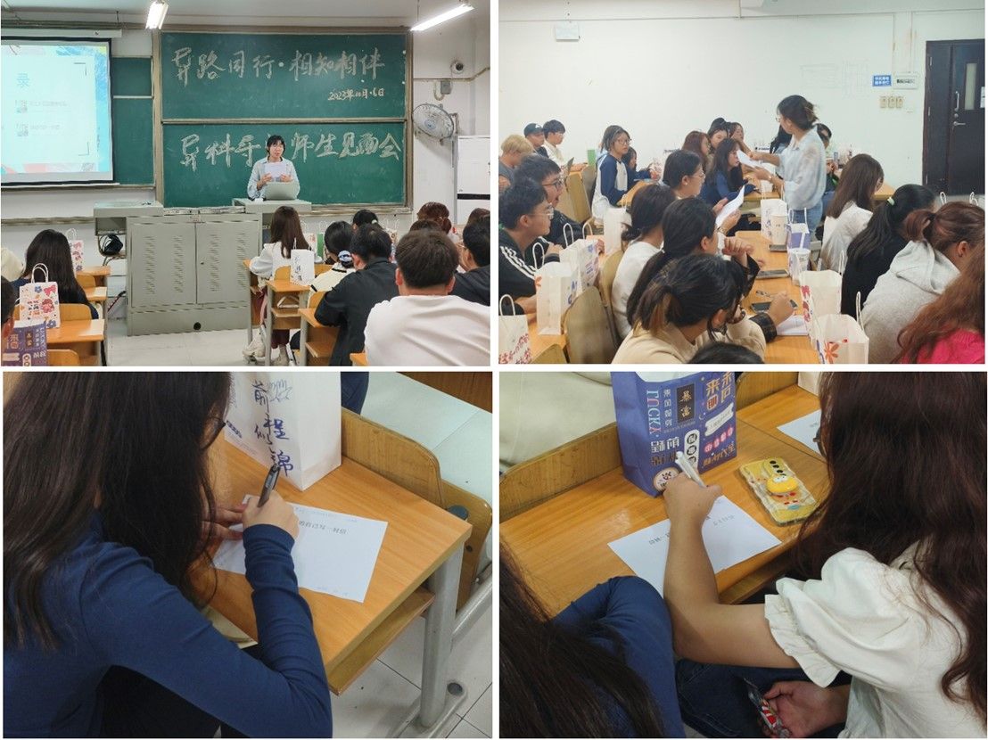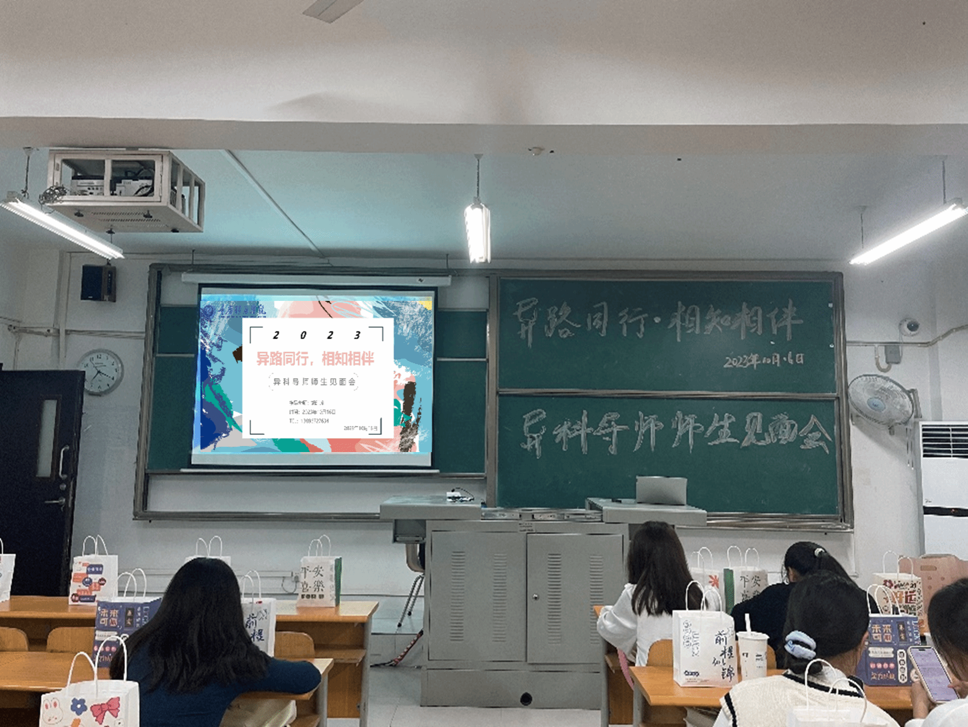 为贯彻落实“立德树人”根本要求,坚持“以学生充分发展为中心”的办学理念,服务学校“四位一体双院制”育人模式和“信息产业商学院”办学定位,以学生全面发展为中心,促进学科交叉融合,发挥知心朋友、成长伙伴、人生导师的角色。2023年10月16日晚上7点30分,异科班导师胡红琼携手2023级广播电视编导4、5班学生,在合川校区1教307教室,开展了以“异路同行,相知相伴”为主题的异科导师师生见面会活动。