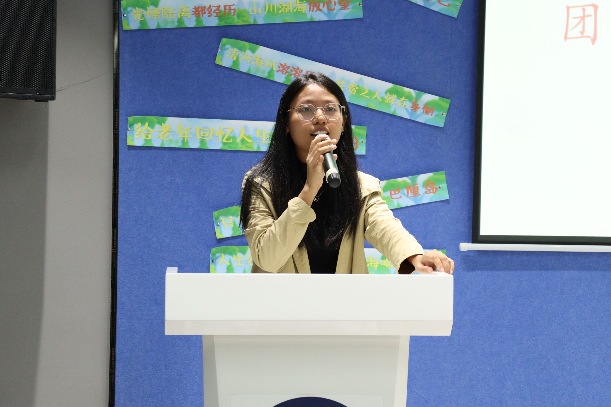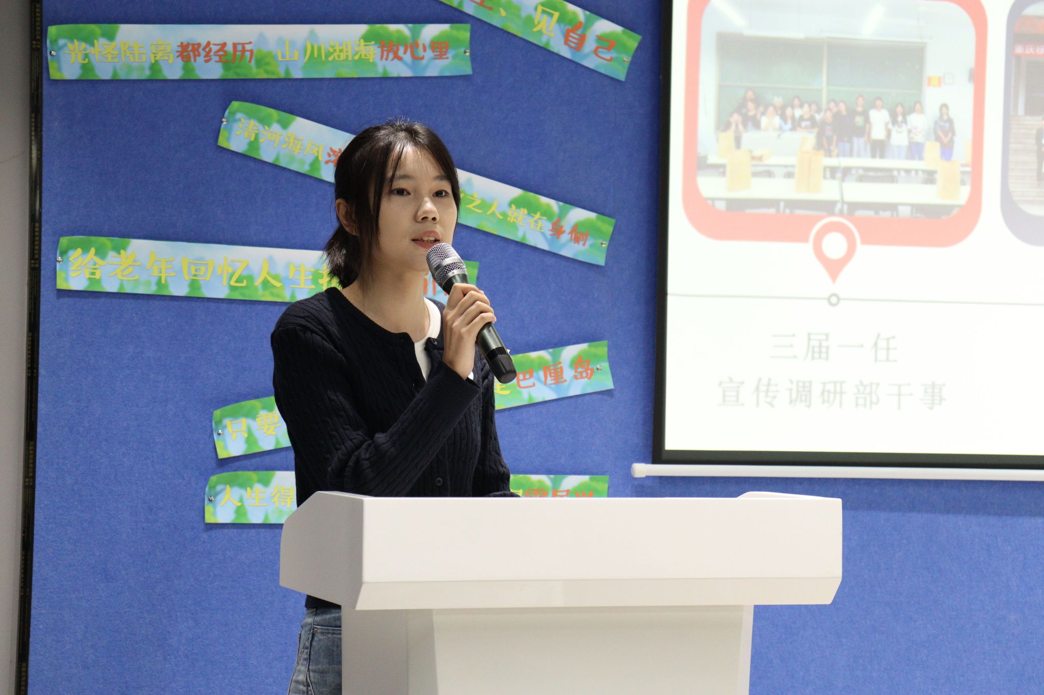 以己为例,薪火相承。各位同学在主持人的引领下高唱团歌。开篇,由艺术传媒学院主席团成员夏露露学姐以《在完满中寻找多样的自己》为题,以自身经历为例,强调在完满教育中,去激发自己的勇气与信心,去发掘自己的潜能,寻找多姿多彩的自己。