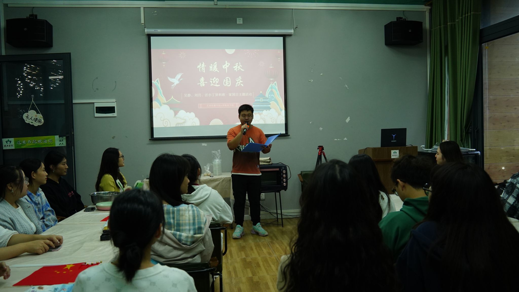 为鼓励异科班学子传承中华传统文化、弘扬爱国主义精神,值此中秋国庆双节来临之际,吴静、刘月、汪小丁异科班于9月26日中午12:30,在花果书院多功能活动室联合开展“情暖中秋,喜迎国庆”异科班·家国日主题活动。活动通过中秋文化解读、手工月饼制作、爱国主义教育等形式,让同学们感受国庆、中秋节日氛围。现场来自艺术传媒学院广播电视编导专业、淬炼·国际商学院工商管理专业等近30名师生家人一起感受传统魅力、抒发爱国情怀。