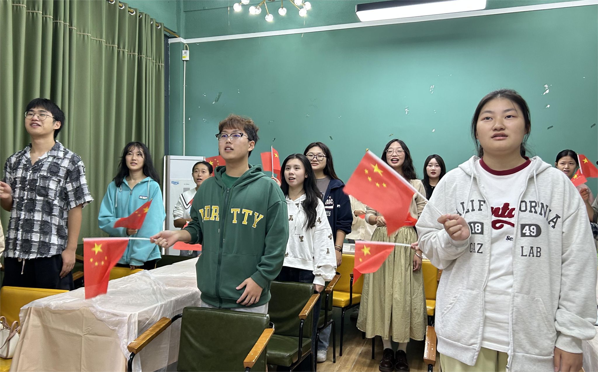 “一心装满国,一手撑起家;家是最小国,国是千万家”一首经典歌曲《国家》点燃了移通学子的爱国之情。大家全情投入的放声歌唱,挥动着手中的国旗,用歌声传递着对祖国母亲的祝福。从国庆节的由来文化讲解、到践行爱国主义实践的呼吁,活动极大程度激发着移通学子的爱国热情,增强学生的民族自豪感,更加坚定“永远跟党走”的信念。