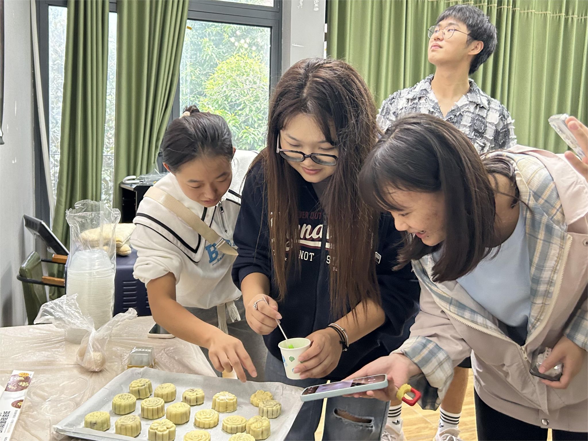 古往今来,中秋吃月饼,既是前年历史文化的传承,更是生活仪式感的体现。活动现场主持人许浩东为大家分享的月饼的起源、月饼的分类、制作工艺等内容,让现场的同学深入了解到月饼文化。数字经济与信息管理学院的李琳为同学们讲解了冰皮月饼与五仁月饼的制作方式,同学们都积极参与制作自己独一无二的“月饼”。