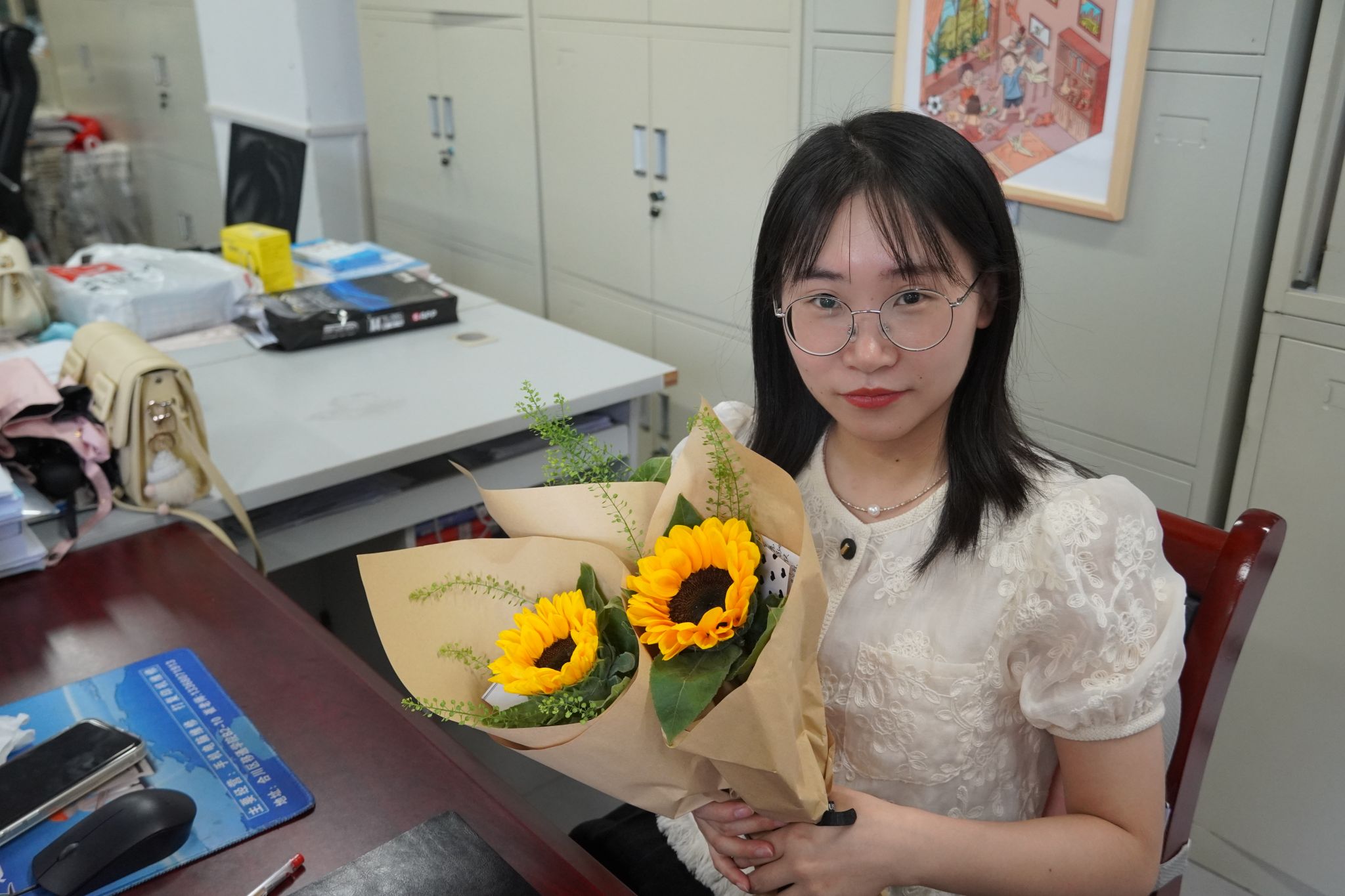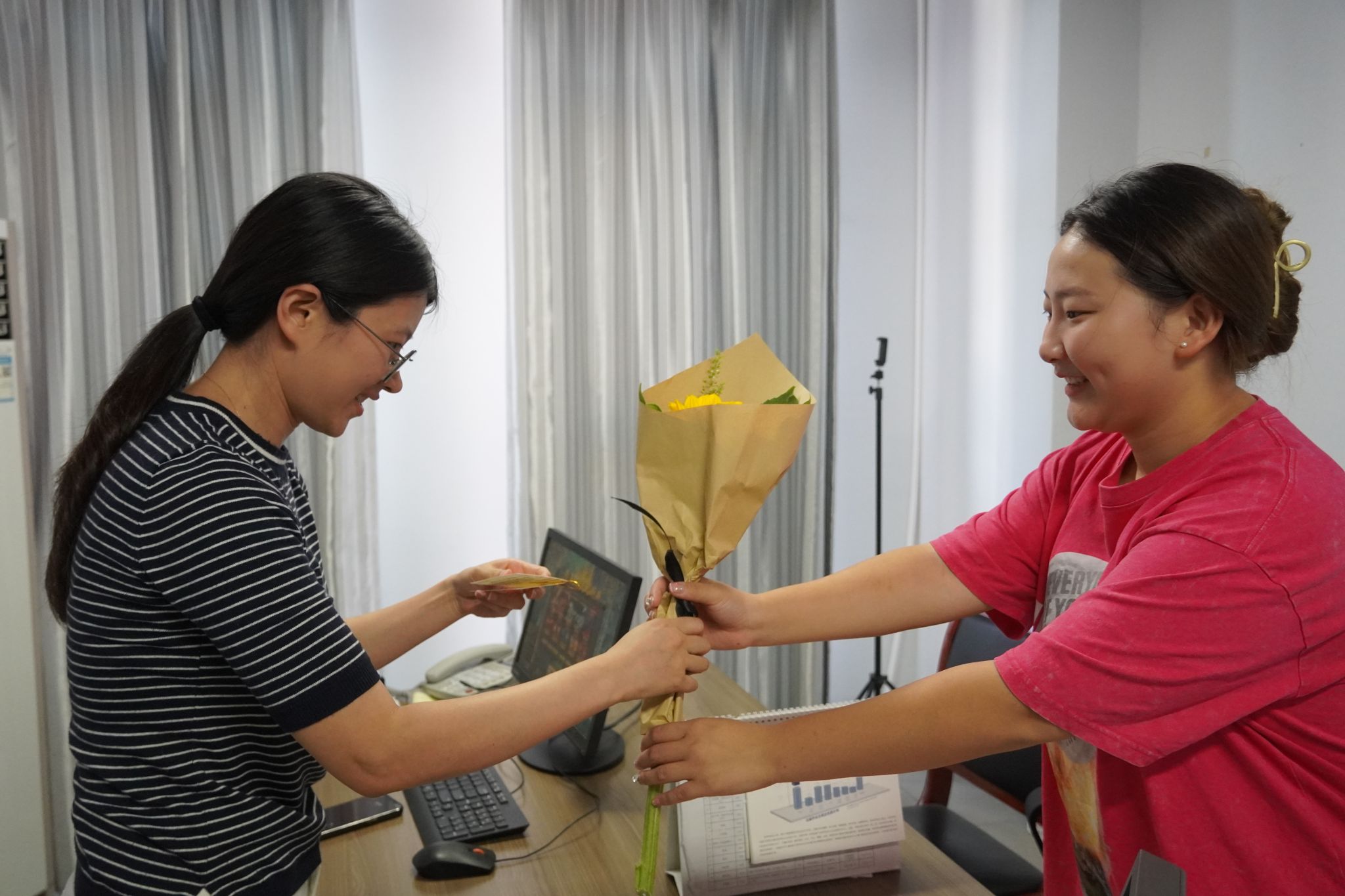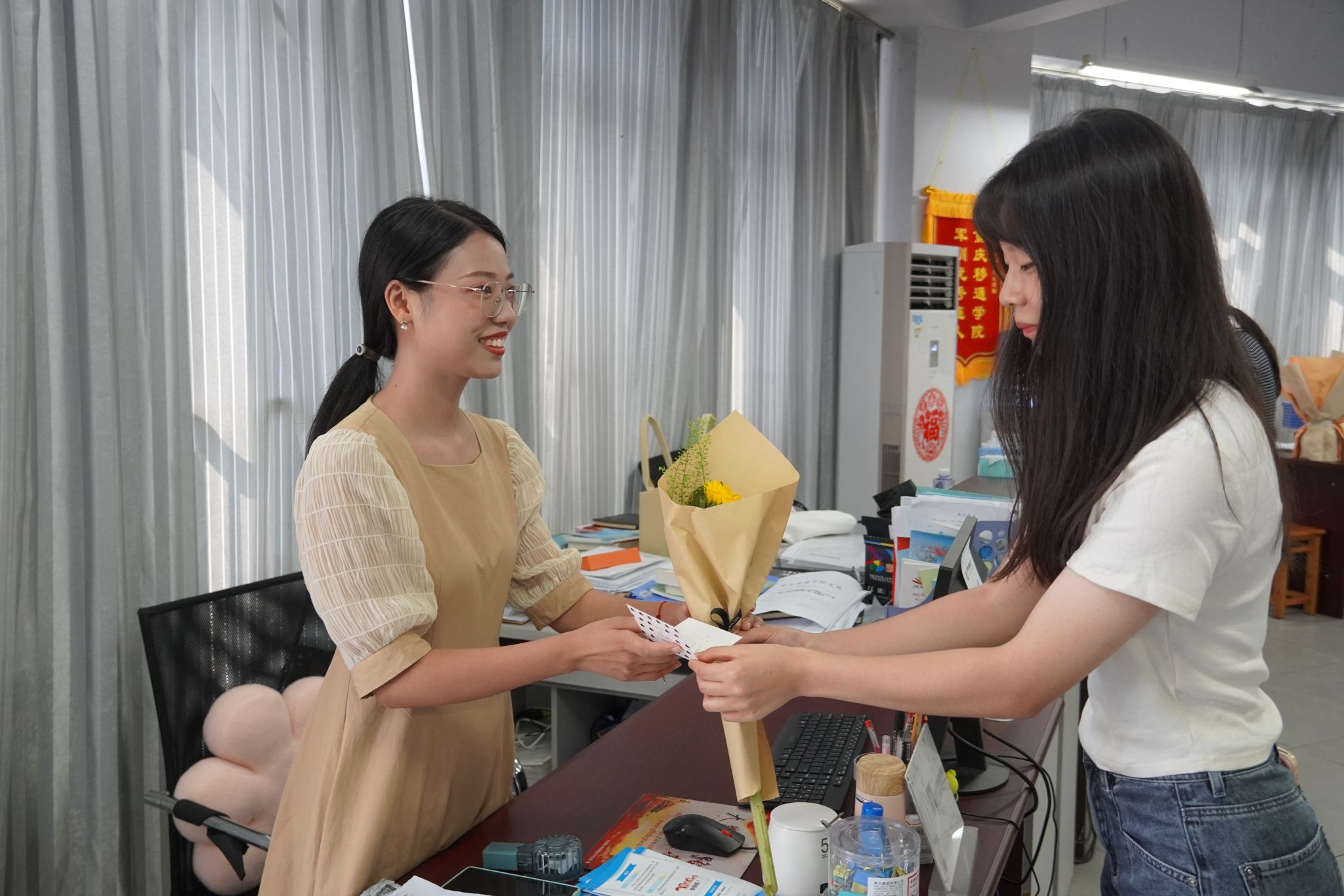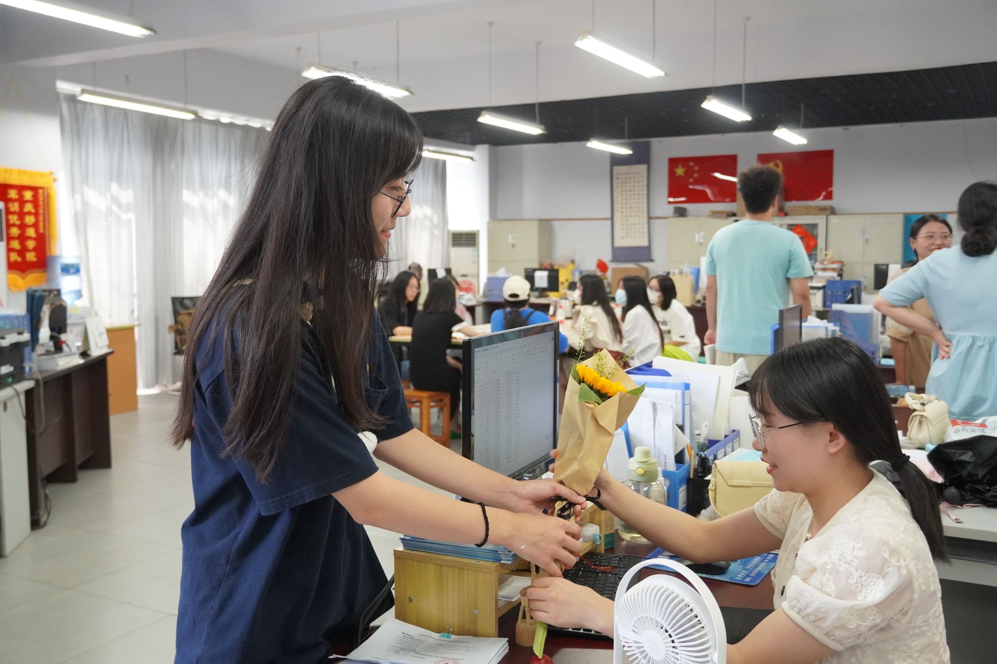 烈日炎炎,热浪袭来,三届三任学生干部们开始了这场送花活动,大家的身影在校园的各个角落穿梭着,手捧鲜花贺卡亲手把礼物送到教师们手中,教师们也热情的拿着鲜花拍照记录来自艺传学子们的心意。
