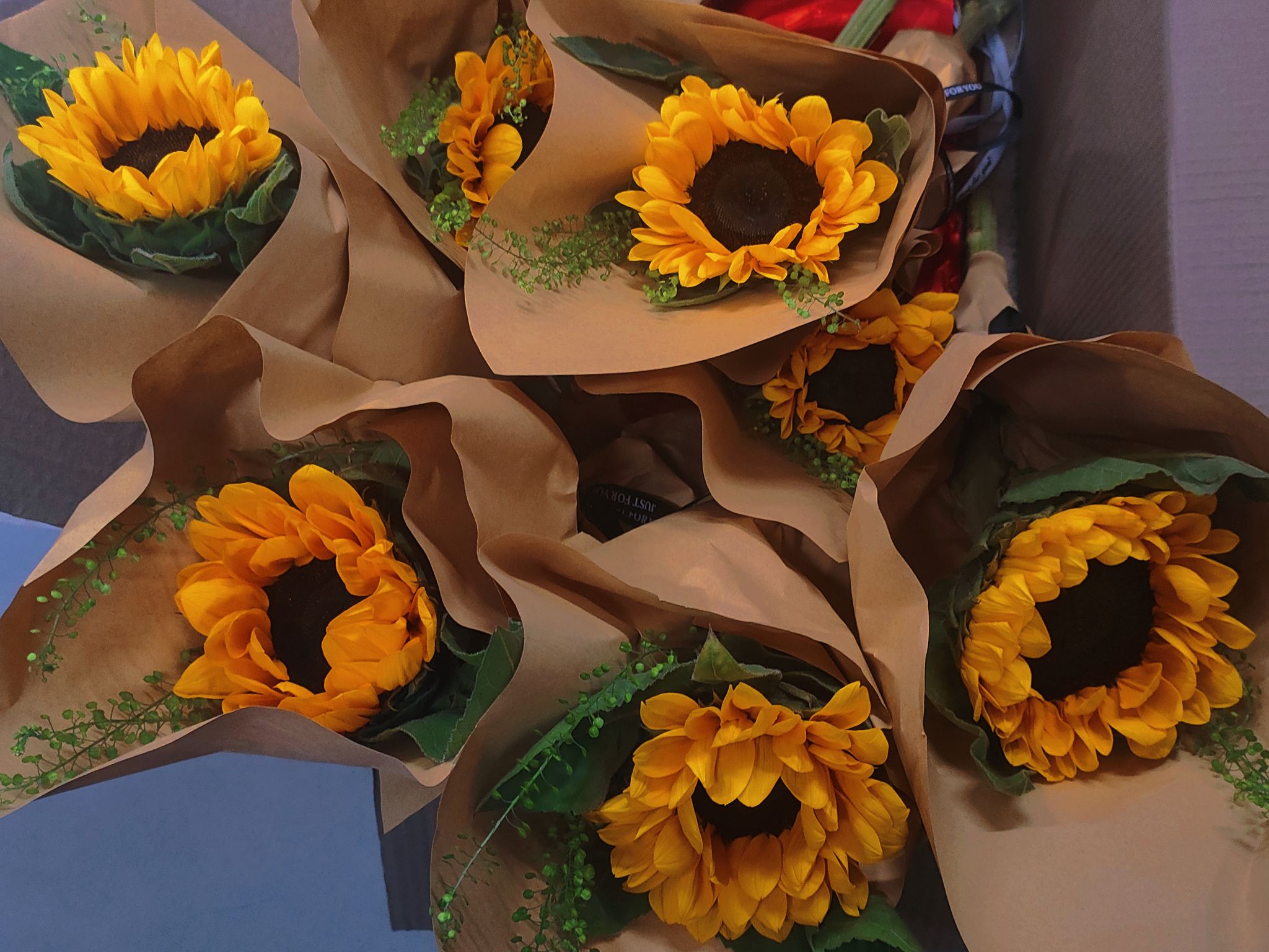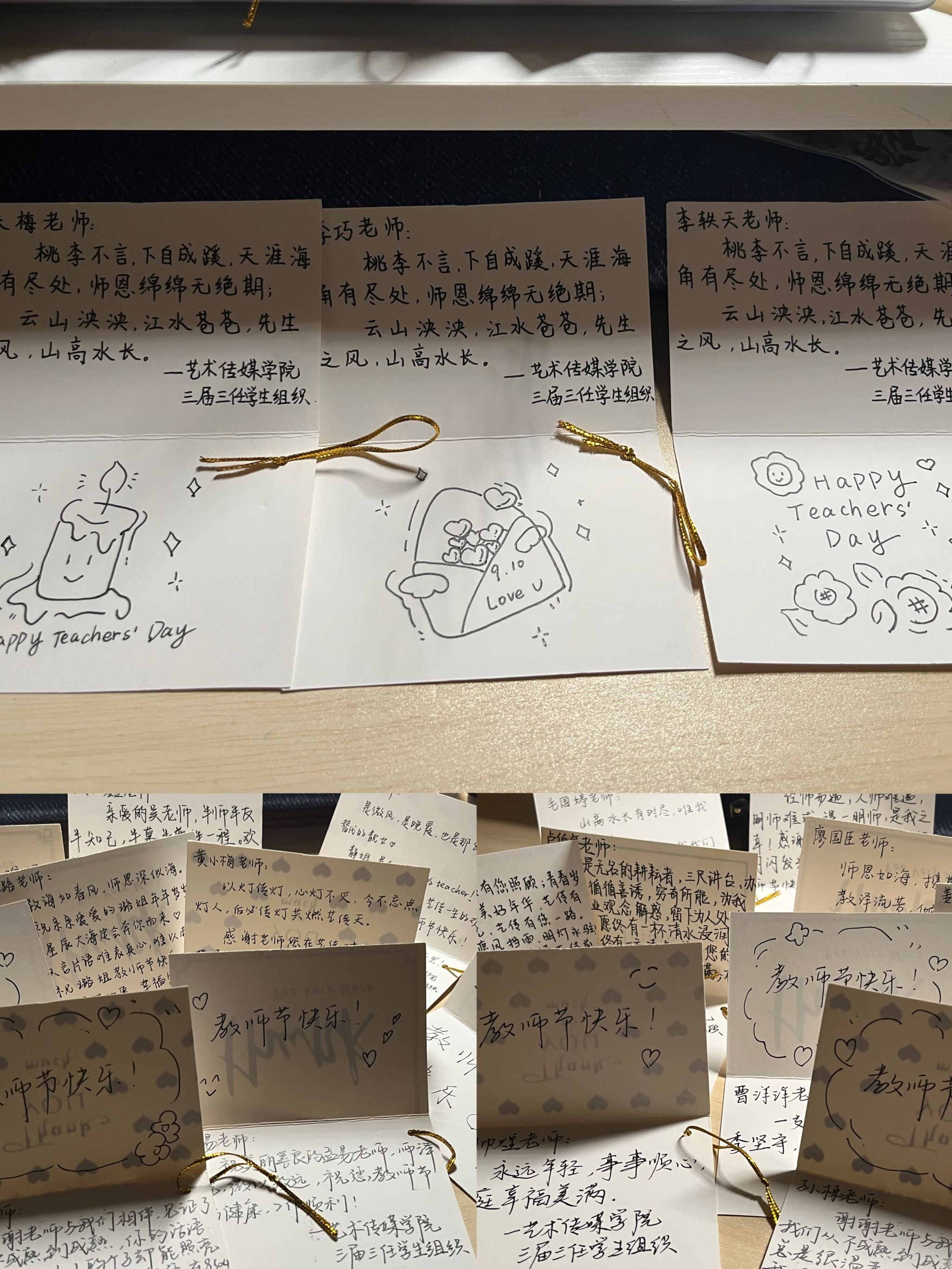 在第39个教师节来临之前,三届三任学生组织干部们认真热情的给艺术传媒学院院长、副院长、辅导员以及四位正在教学的老师们在贺卡上写下最真挚的祝福和送出精心准备的向日葵,向日葵离不开太阳的滋润,艺传学子也离不开艺传教师的教导。