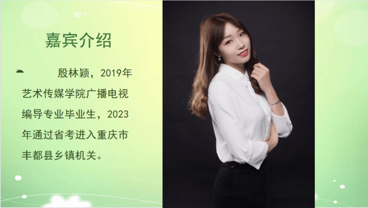 为了增加艺术类学生对考公的深入了解,解答备考过程中的疑惑,更好地分析考公形势。艺术传媒学院于2023年8月20日15:00在线上举办了第39期【移通有约】——“熠熠青春,勇往直前”考公线上交流分享会,由艺术传媒学院2015级广播电视编导专业优秀校友殷林颖来做分享,本次活动共有50名学生参加。
