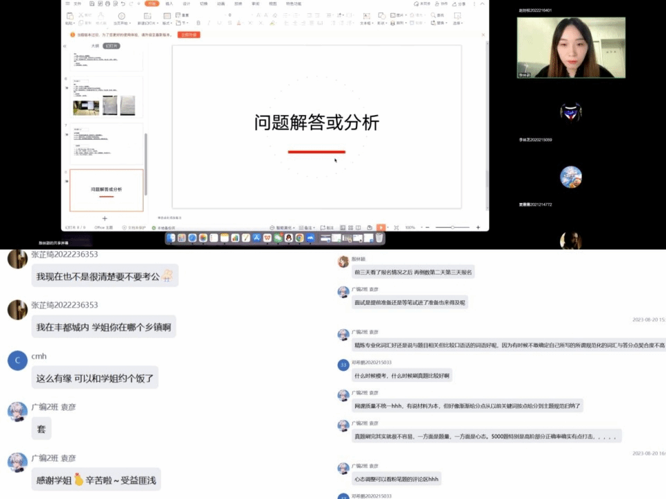 至此,历时一小时四十分钟的考公线上交流分享会就结束了。当晦暗散尽,终星河长明。相信通过本次交流分享,让同学们获得了许多宝贵的考公技巧,为有意向考公的同学们提供了平台和渠道,也让那些迷茫于考公的同学们有了更清晰的规划,为未来备考打下基础。