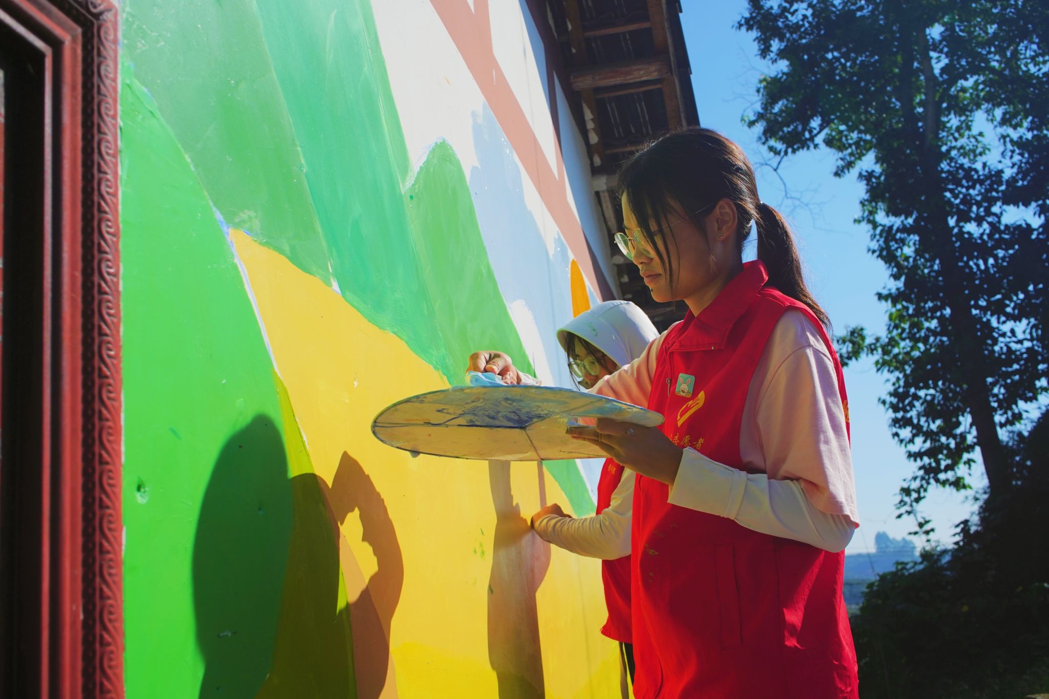 一方水土造福一方人,渭沱镇七星村依山傍水,“美益乡村”文化艺术服务团用画笔描绘美丽乡村,赋能乡村振兴。墙绘创作不仅扮靓了村居环境,还营造了“讲文明、树新风”的良好氛围,有效激发了乡村文化的内生动力,提升乡村振兴的文化软实力。在后续墙绘的绘制中,志愿者们将继续发挥专业特色,持续开展志愿服务,践行了以人民为中心,关注农村人居环境的乡村环境理念,让人民有更多获得感、幸福感,助力打造“宜居宜业”的生态环境。用青春的能动力和创造力激荡起发展进步的澎湃春潮,用青春和汗水造就一个更美好的中国。