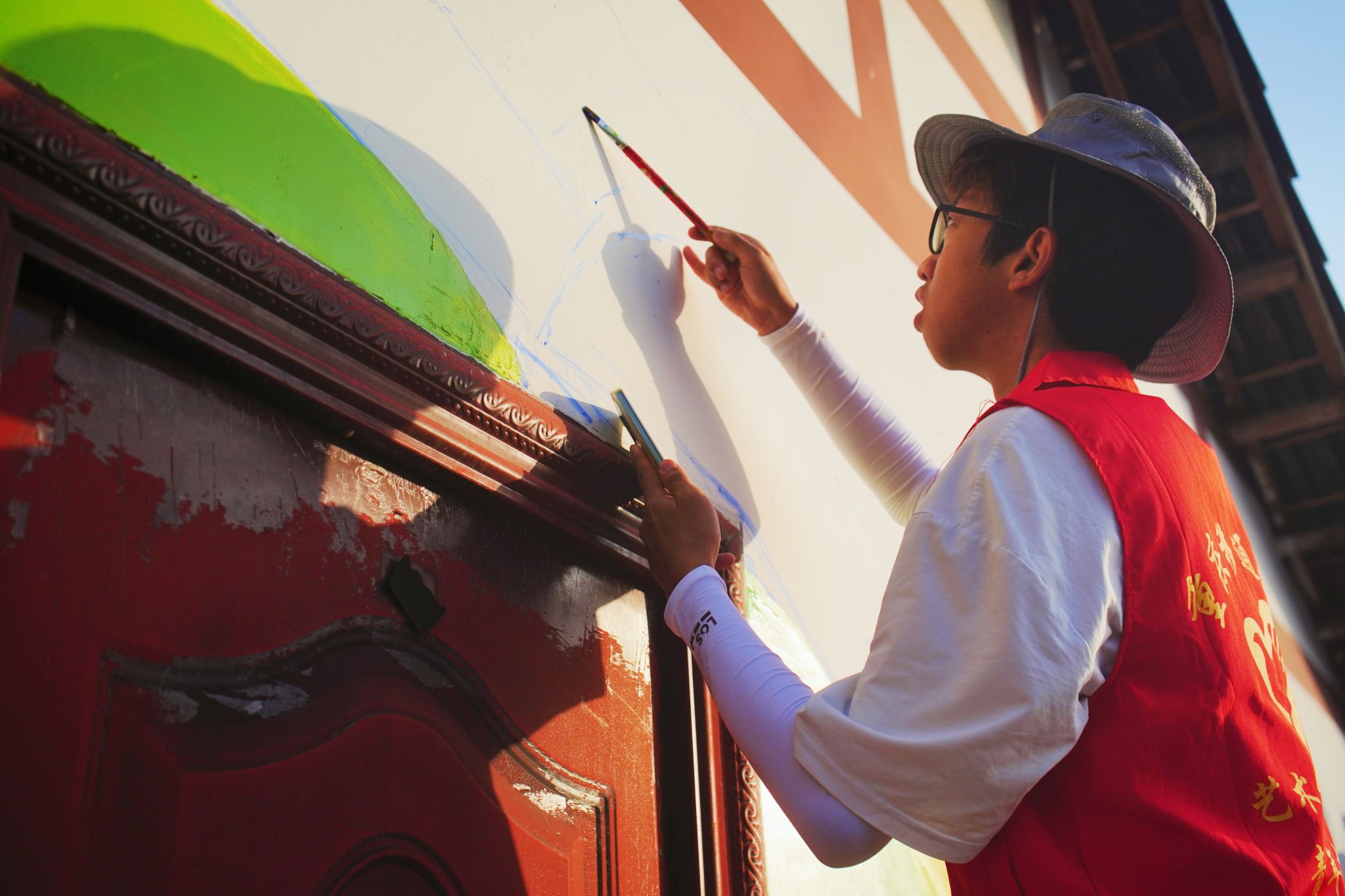 “美益乡村”文化艺术服务团的志愿者们不畏烈日,身穿红马甲,心中有力量。成员们分为三组,由小组长带领,进行第一组以七星村特色风光为主题的墙绘创作,开启美化乡村环境的进程,让广大村民欣赏彩绘,激发建设美丽乡村的热情。