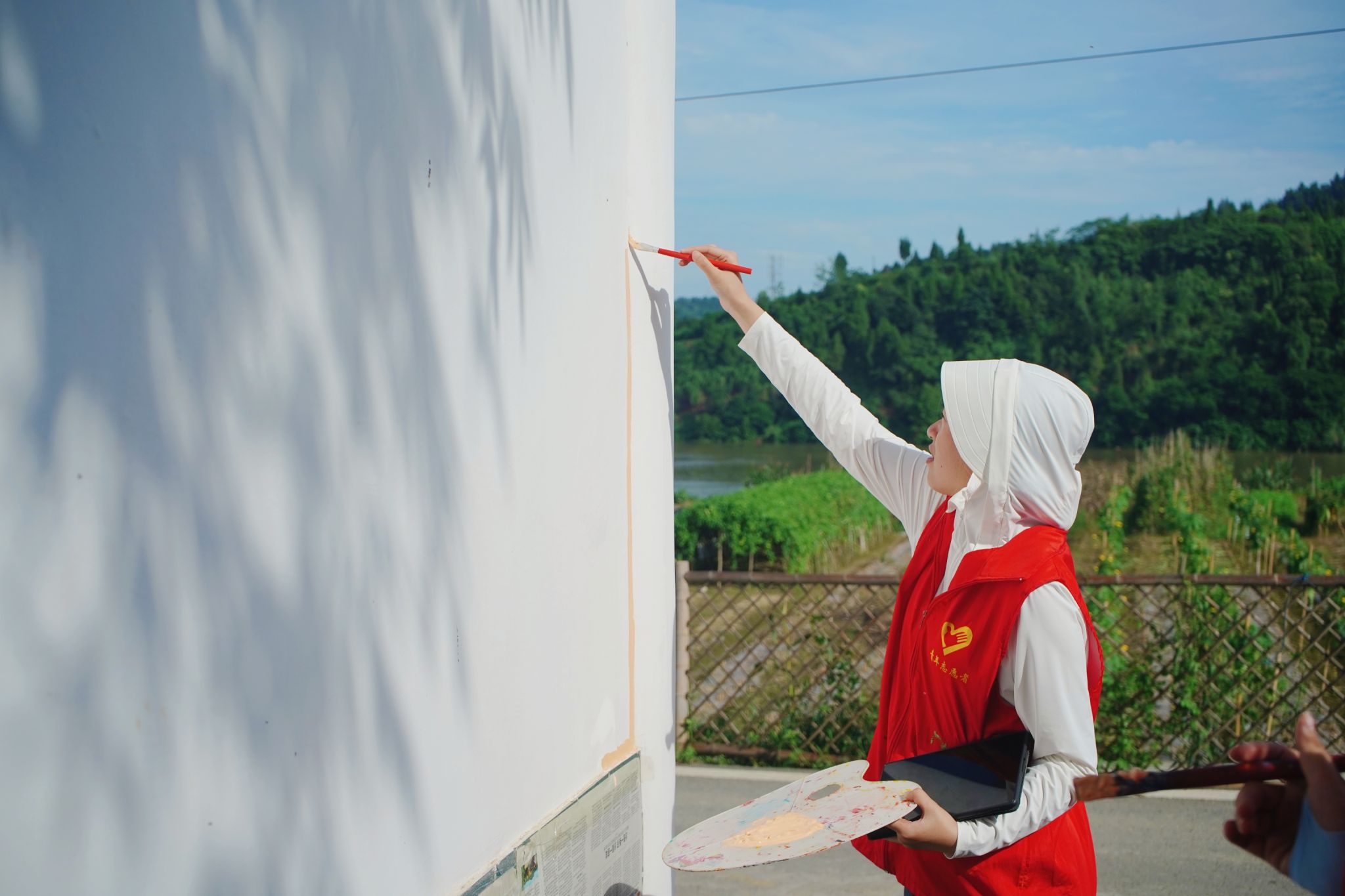 为鼓励大学生走出校园,深入基层,建设美丽渭沱,美化七星环境,增进当代大学生的乡村振兴意识,向着优美乡村的目标前进。7月4日至7月5日,“美益乡村”文化艺术服务团的成员们在合川区渭沱镇七星村通过墙绘视觉设计进行生态环境美化。