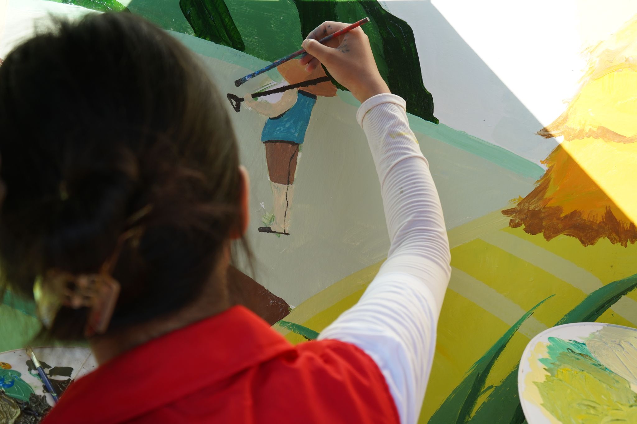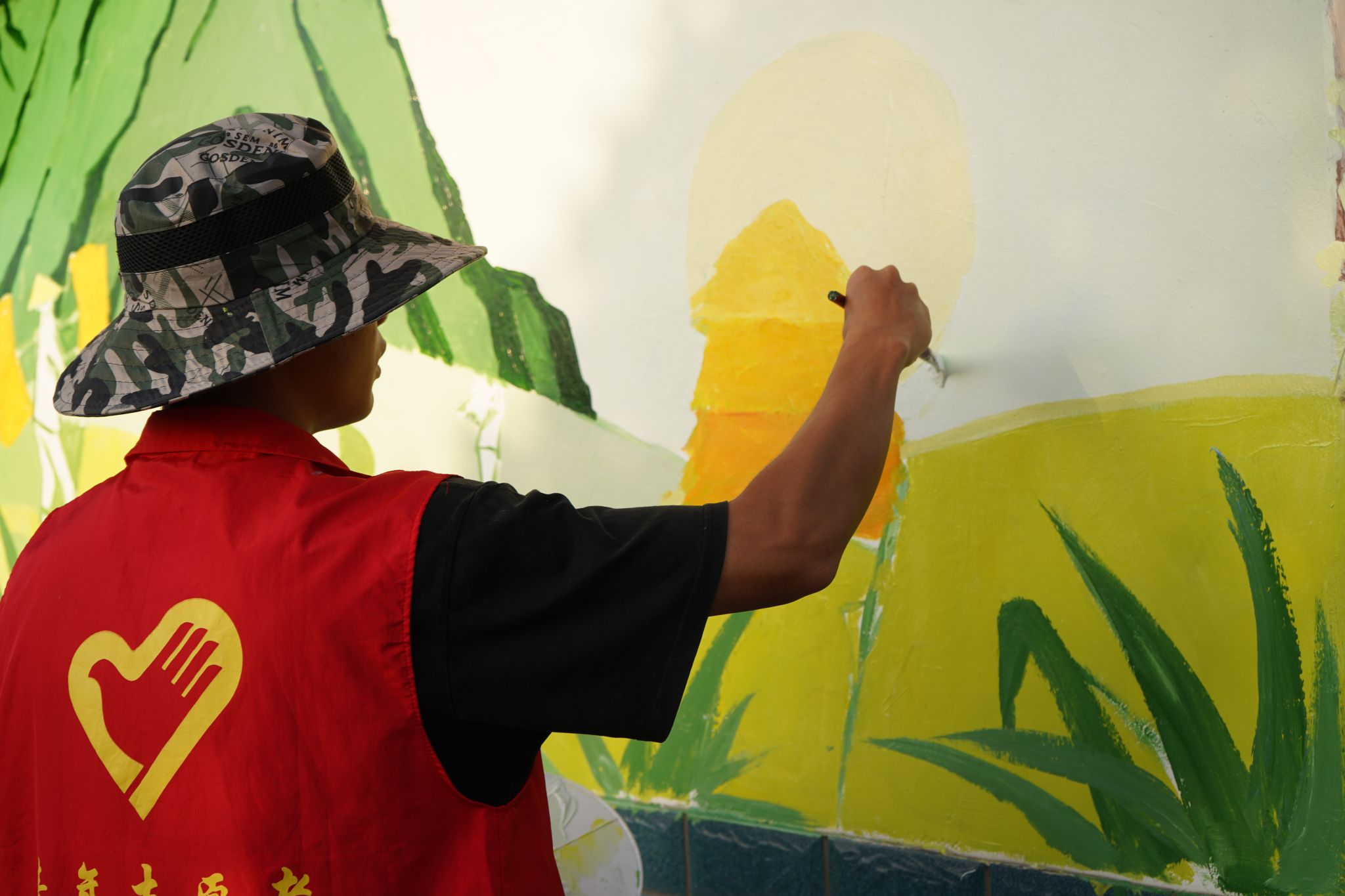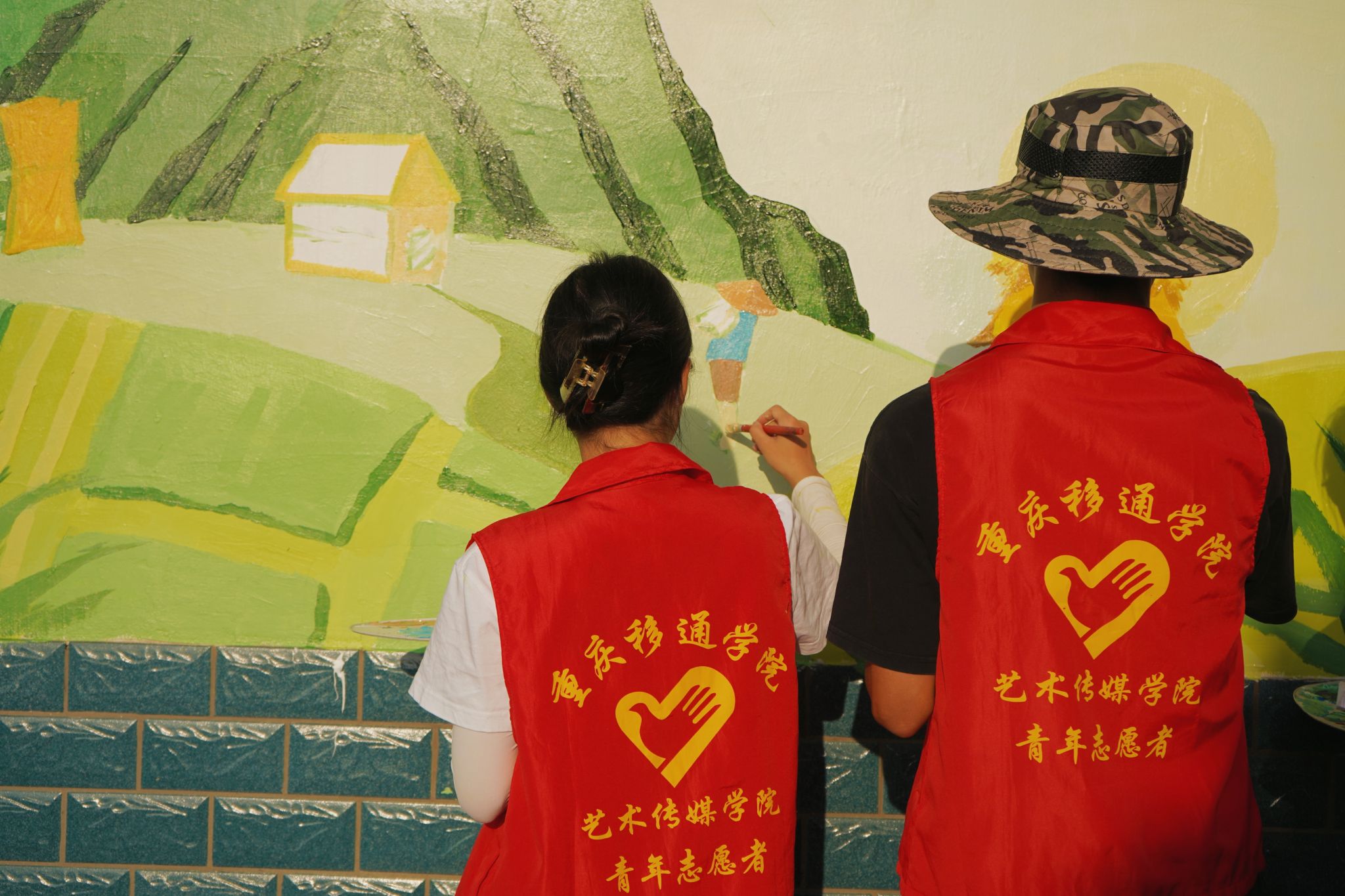 7月的盛夏,身穿红马甲的“美益乡村”文化艺术服务团志愿者们伴着朝阳与晨雾去往墙绘目标地点,创作热情高涨的志愿者们通过前期实地勘察并与当地政府人员多次进行设计稿的打磨、制定墙绘方案,结合专业所长,发挥学科优势,最终按照设计稿在墙体打底稿、涂底色,绘墙图……以墙为布,以渭沱镇七星村文化底蕴为支撑,以乡风精神文明为基础,不断发挥创作力与想象力,用饱含自然美和文化美的图画凝练文化内涵、推进龙井湾生态文明建设。