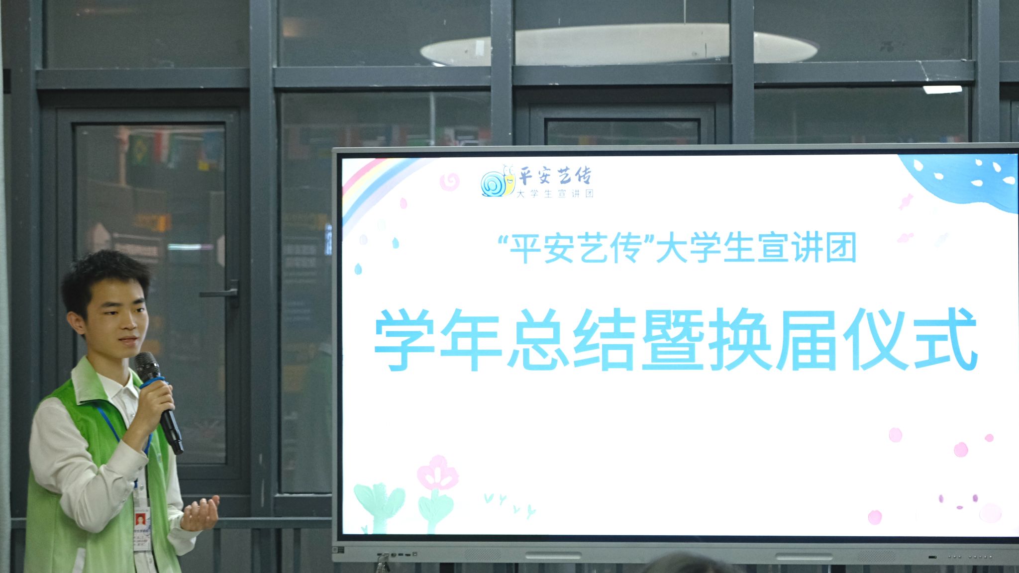 2023年6月16日,“平安艺传”大学生宣讲团换届仪式于南湖书院国际交流厅正式举行。遨游浩瀚,逐梦九天,从2022年5月成立至今,有的不仅是我们的浪漫梦想,也离不开所有成员脚踏实地的行动,我们将防骗技巧与小妙招深入班级深入各个组织,将“携手同行筑牢安全防线,青言青语”的初心践行到底,将“平安艺传”的身影带到学院的各个角落。