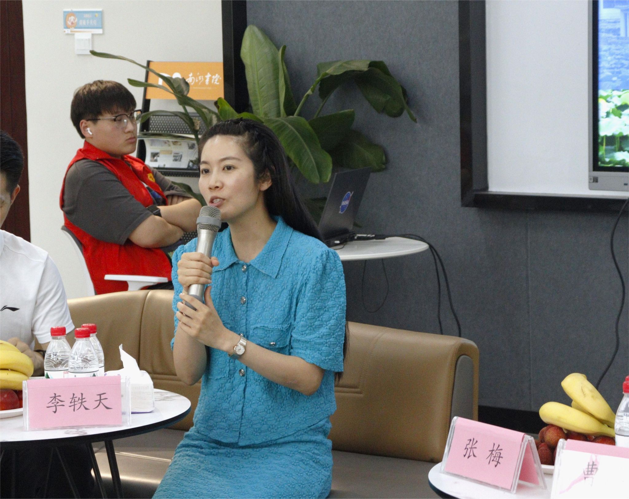 紧接着,艺术传媒学院教研室老师对相关专业、培养方向进行解读。张梅副院长表示理论与实践相结合的课程安排基本涵盖了广播电视编导专业的学生对于前期文本创作,中期摄影摄像以及后期视频制作的行业需求;彭燕雪老师就数字媒体艺术专业阐述该专业课程安排与市场需求相适应的特点;团总支书记安珈璇老师结合学院完满教育工作实际,阐述了“完满教育”模式及内容,突出学生在课内外同等重要模式下的成长和锻炼。