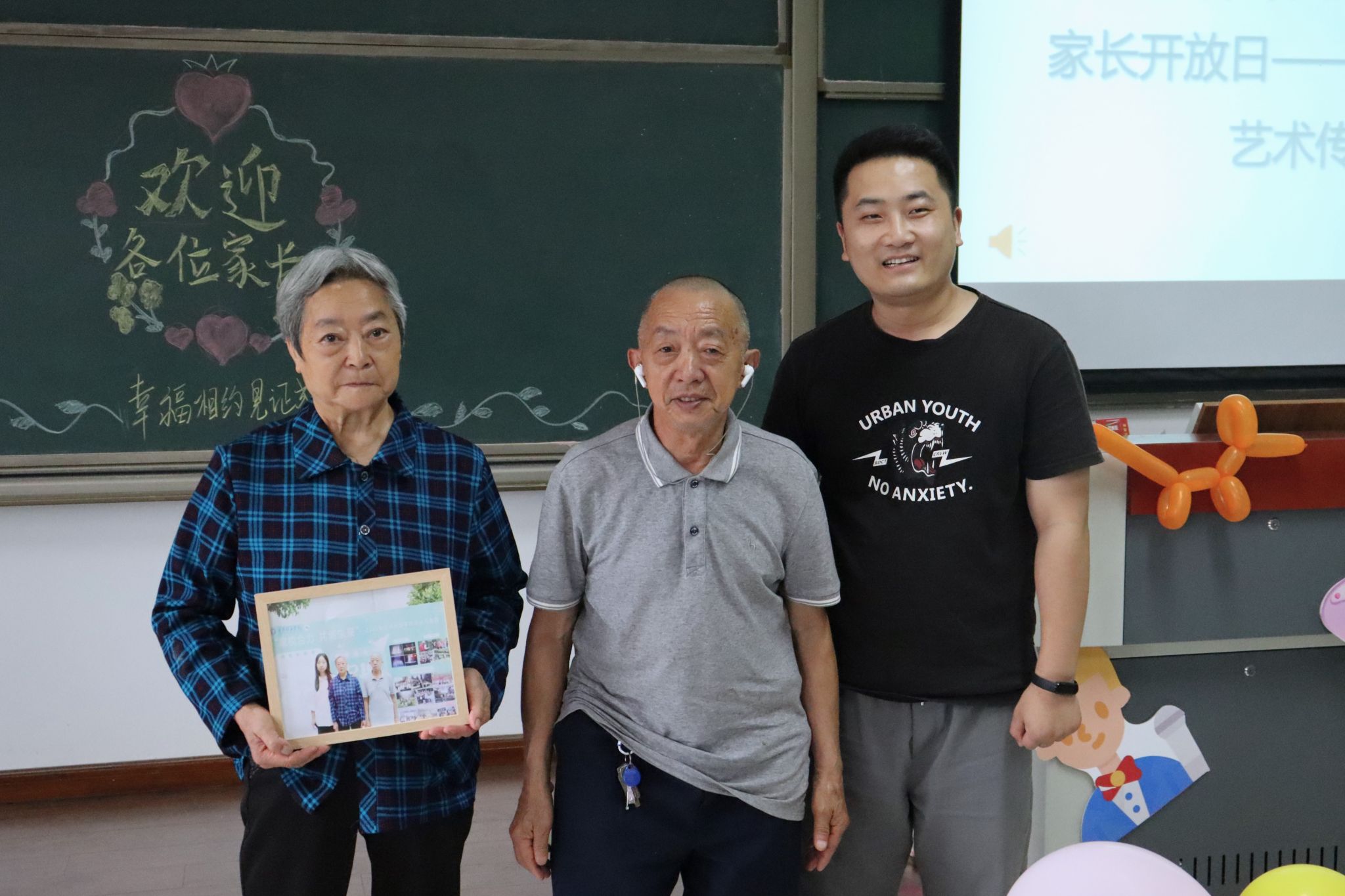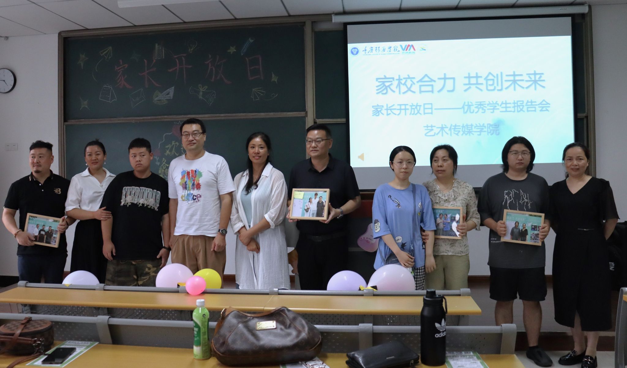 活动接近尾声,为了对各位到来的家长表示感谢,由辅导员王璐与胡磊老师为家长们送上洗印和装裱好的全家福相框,并合影留念。