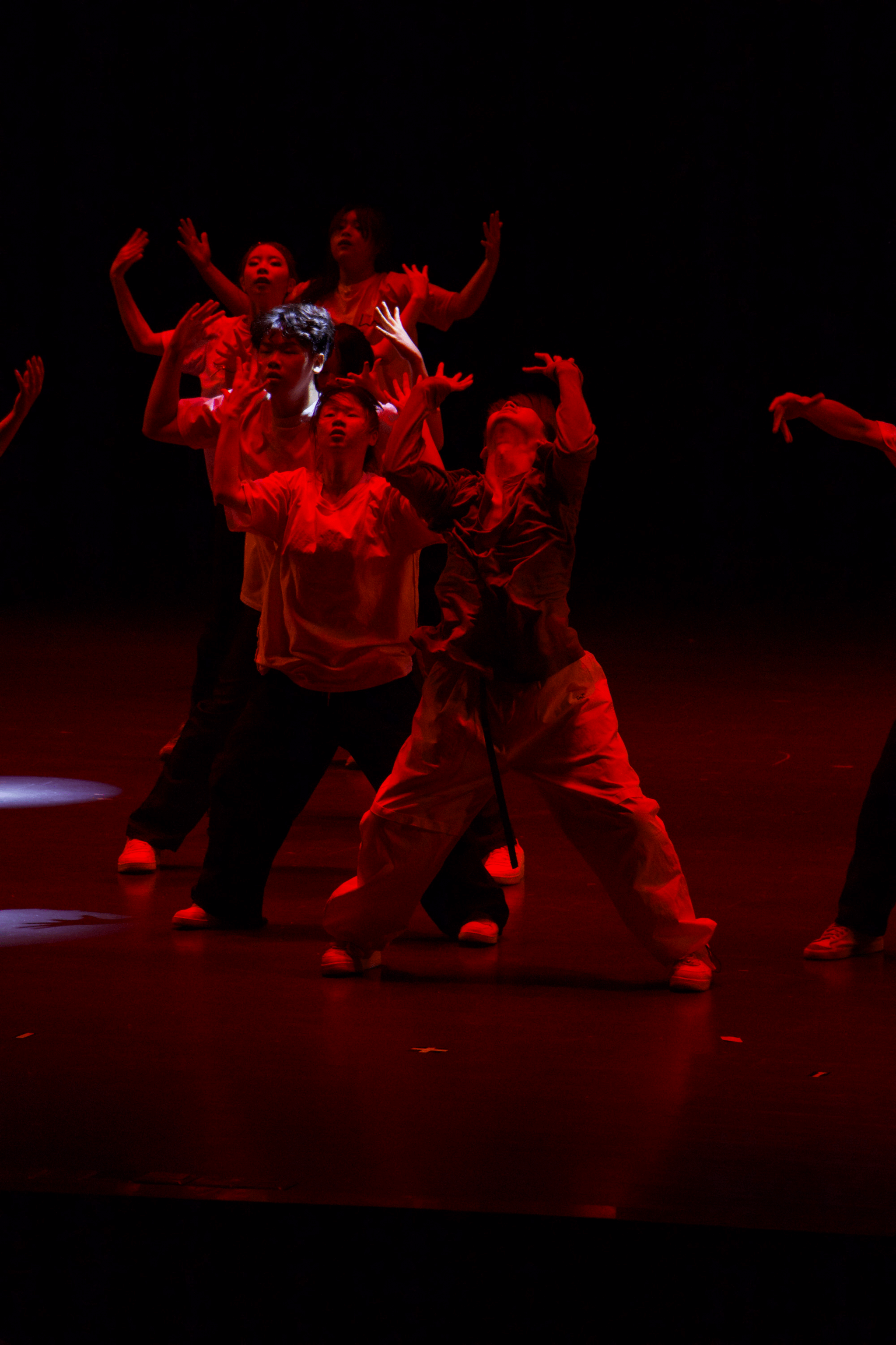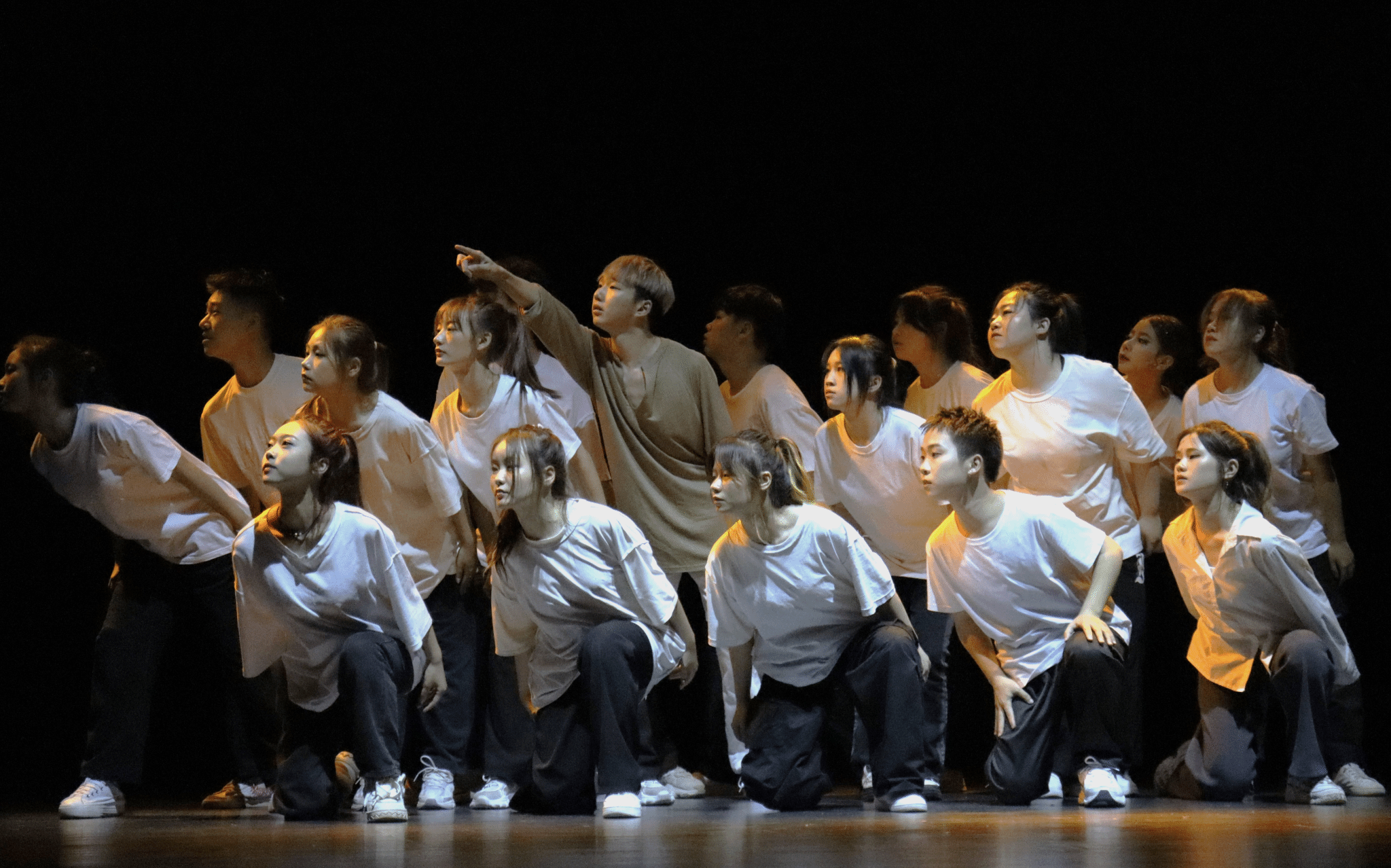 暮色逐渐模糊,伴着缤果大剧院场灯光的熄灭,比赛正式开始,艺术传媒学院作为第二位出场的学院,顶着压力迎难而上。以歌曲《山海》入耳,以充满情绪表达的舞蹈入心。主舞杨豪用极富张力的肢体表达与最真诚的情感宣泄赢得了阵阵掌声,台下此起彼伏的赞叹与掌声是这次舞台最好的证明与肯定。当音乐的进入尾声,舞蹈动作定格的那一瞬,往日的辛苦与汗水已被擦去,剩下的是满满的感动与不舍。