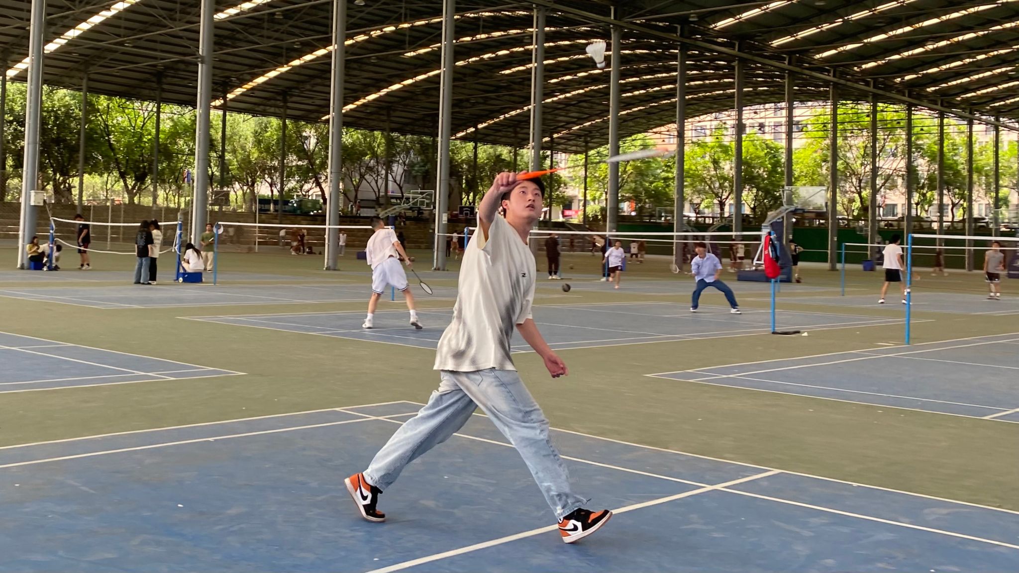 经过激烈角逐与层层选拔,最终四人进入决赛,紧张的“羽艺杯”决赛终于到来。决赛作为一场高水平的竞赛,比赛队员们展现出了各自的实力技巧,他们跟随羽毛球的跳跃在场地上奔跑,精彩的发球、大力的扣杀、巧妙的吊球以及攻防双方的转换,让同学们大饱眼福,为运动员呐喊助威的加油声一阵高过一阵。