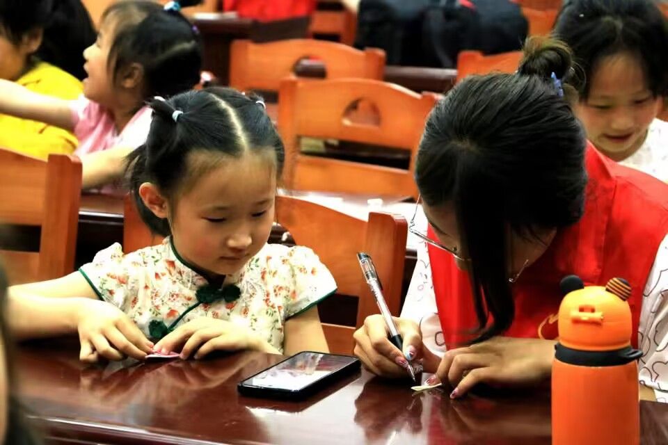 小小折纸,传递着孩子们对劳动不一样的感受。这一活动在吸引小朋友的注意力的同时,也培养了孩子的动手动脑能力、记忆力、想象力、创造力。在志愿者们的协助下,一张张卡纸在小朋友的手上变成栩栩如生的千纸鹤、爱心...在大家的欢声笑语中沉浸式体验折纸带来的乐趣,拉进了志愿着与小朋友之间的距离,同度过了美好的活动时光。