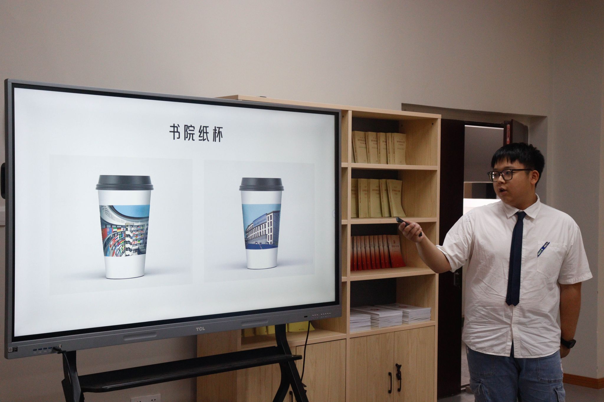 本次比赛共收到19组参赛作品,分为视频、海报宣传以及文化产品宣传设计三种类型。首先播放的是视频类,各团队通过视频来表现移通学子的风貌,紧扣主题。有用故事讲述移通学子,也有用延时摄影展示移通一天的风景。书院制大学,四位一体双院制办学理念,参赛团队用海报的形式进行创作,用不同色度赋予趣味,展现完满教育的活力。文化产品宣传类设计,则通过对南湖书院特色建筑进行文化产品设计。用画笔勾勒独特的logo,设计帆布包、一次性塑料杯等周边文创产品。同学们发挥着天马行空的想象力,从多个角度宣传移通文化。