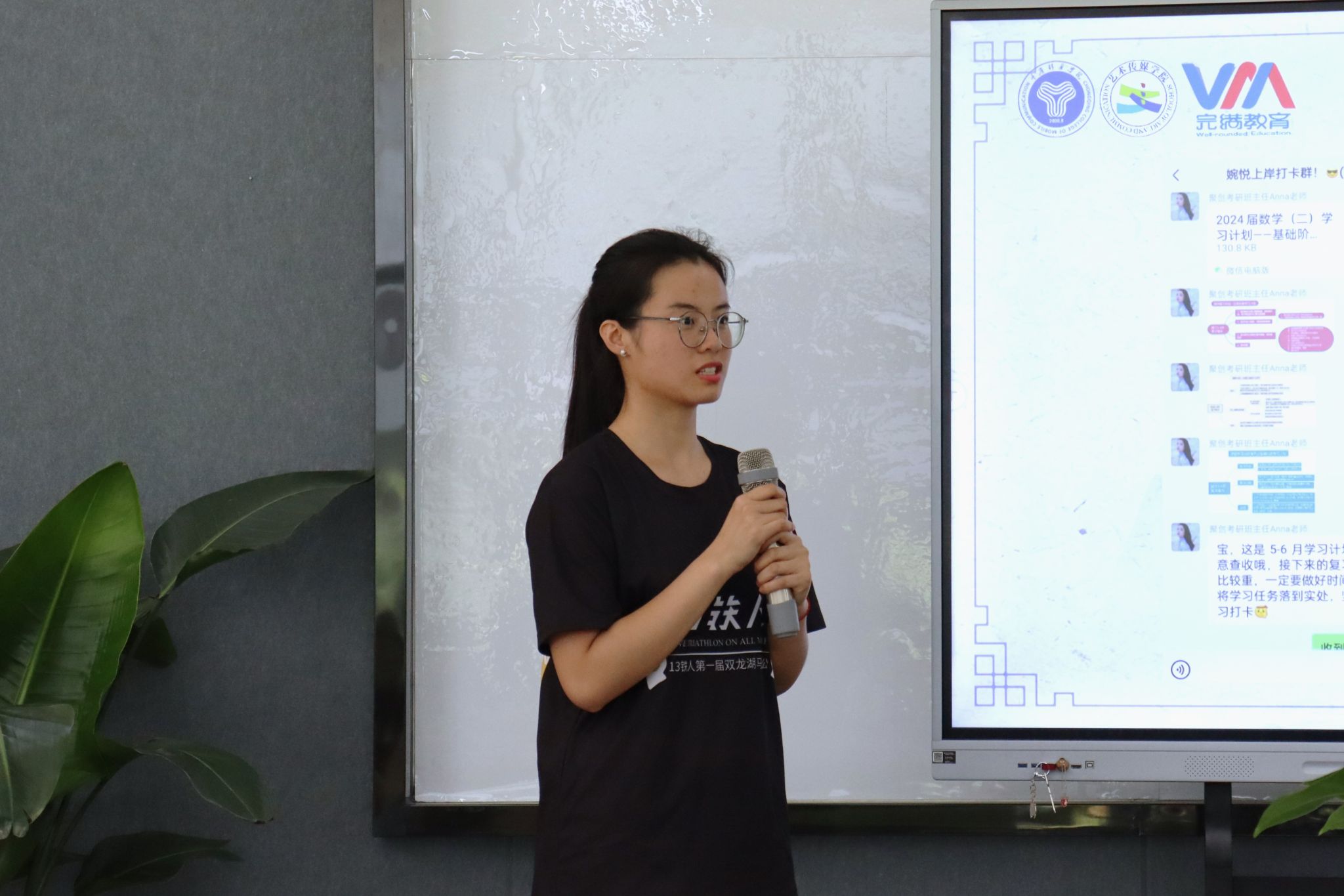 胡婉悦不仅仅是学习优秀,才艺方面也是优秀的榜样。她强调要有一个自己感兴趣的爱好,并且坚持下去。分享会进入尾声,同学们争先向“达人”提问。有同学提出“考研一定要报班吗?”胡婉悦认为,“考研不一定需要报班,根据自身情况认真斟酌后看自己是否需要。”对于大家提出的问题,她都十分耐心解答,并对同学们给予鼓励。