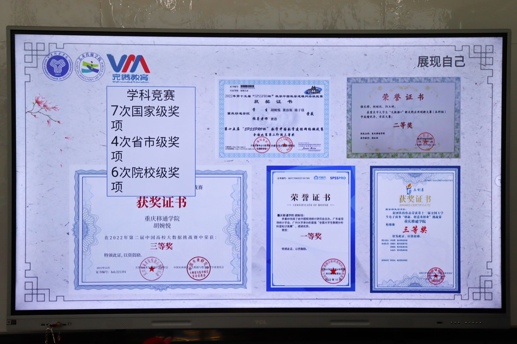 与此同时,胡婉悦同学希望同学们在大一阶段多夯实基础、坚持考级、多拿奖状、努力入团入党,为大二打下良好的基础。胡婉悦向同学们分享一些获奖经历,每一张奖状背后都是一段努力艰苦的付出。胡婉悦还分享了她考研的过程,并希望在座的同学能提早规划好自己的目标,不管是考研还是考公还是找到一个好的工作,无论如何是选择哪个方向,都要为之奋斗。
