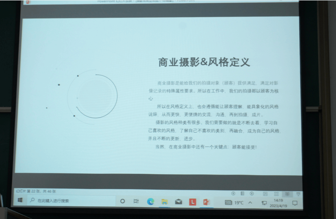 陈老师为同学们展示了一些摄影作品,推荐了各类比赛,鼓励同学们参加活动,参加比赛,不断增强自己的摄影技术增长自己的见识。在大学生活中努力学习积极向上。