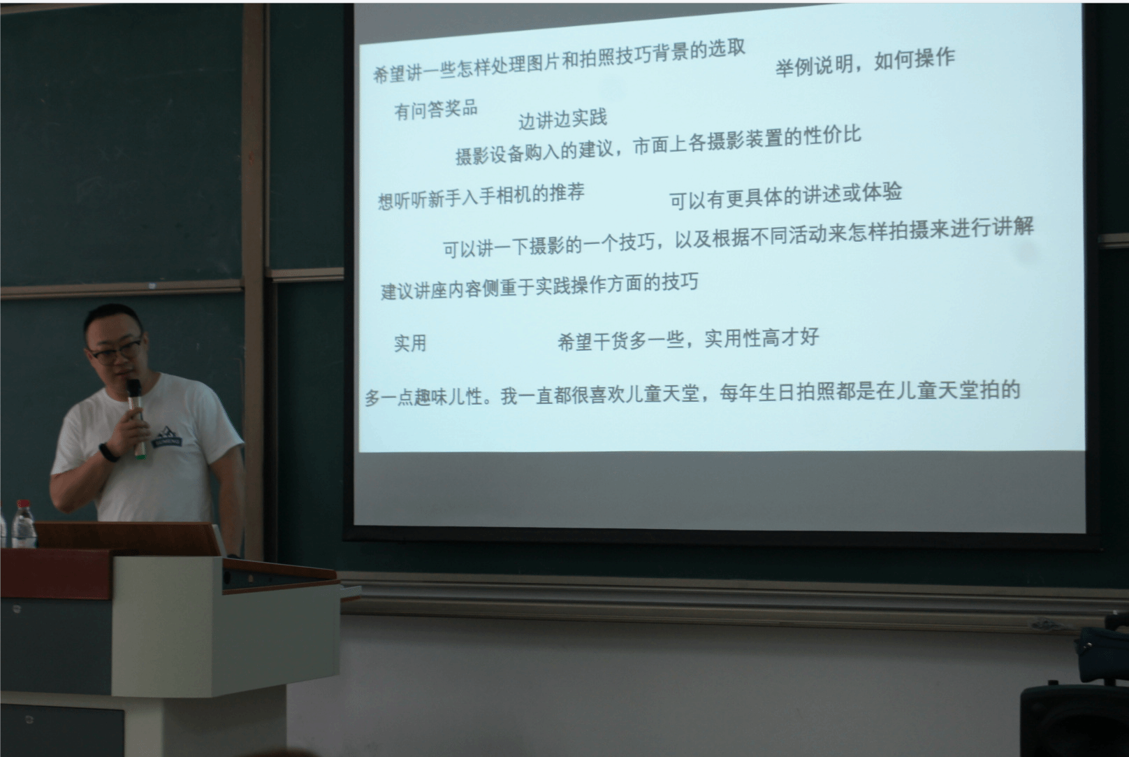 接着陈嗣豪老师讲解相机应如何选择,不同品牌相机的特点,新手小白应该购买种相机。同学们也在积极思考相机的购买以及陈嗣豪老师所说的拍摄技巧,积极参与问答活动与老师积极交流心得提出自己的疑惑。