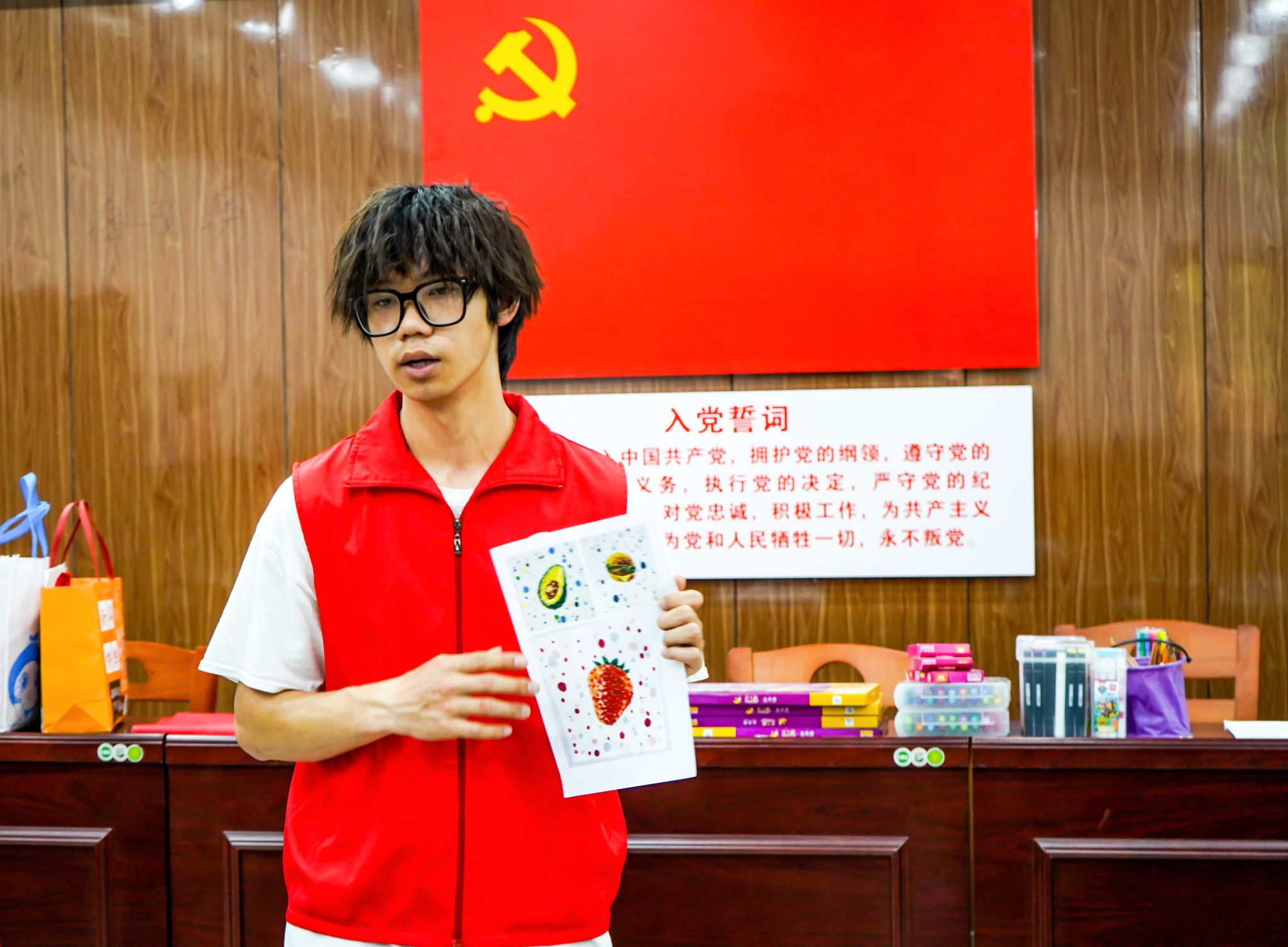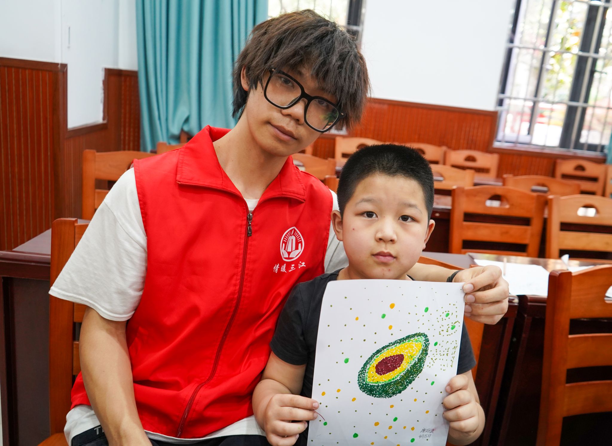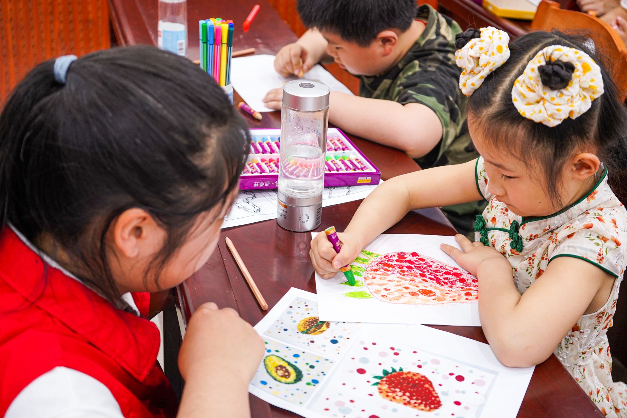 志愿者们让小朋友们自己动手在画纸上绘画,从最基础的“点”开始,用“点”来绘画出彩色水果,感受绘画的乐趣。志愿者携手小朋友一起执笔,在画纸上画上各种颜色的“点”,在悉心地教导与帮助中,完成属于自己独创的画作,用色彩展现出小朋友们童真心灵。不仅传递了志愿精神,让更多的人参加到志愿服务中,一同传递爱心,感受志愿带来的乐趣,提升自我价值。