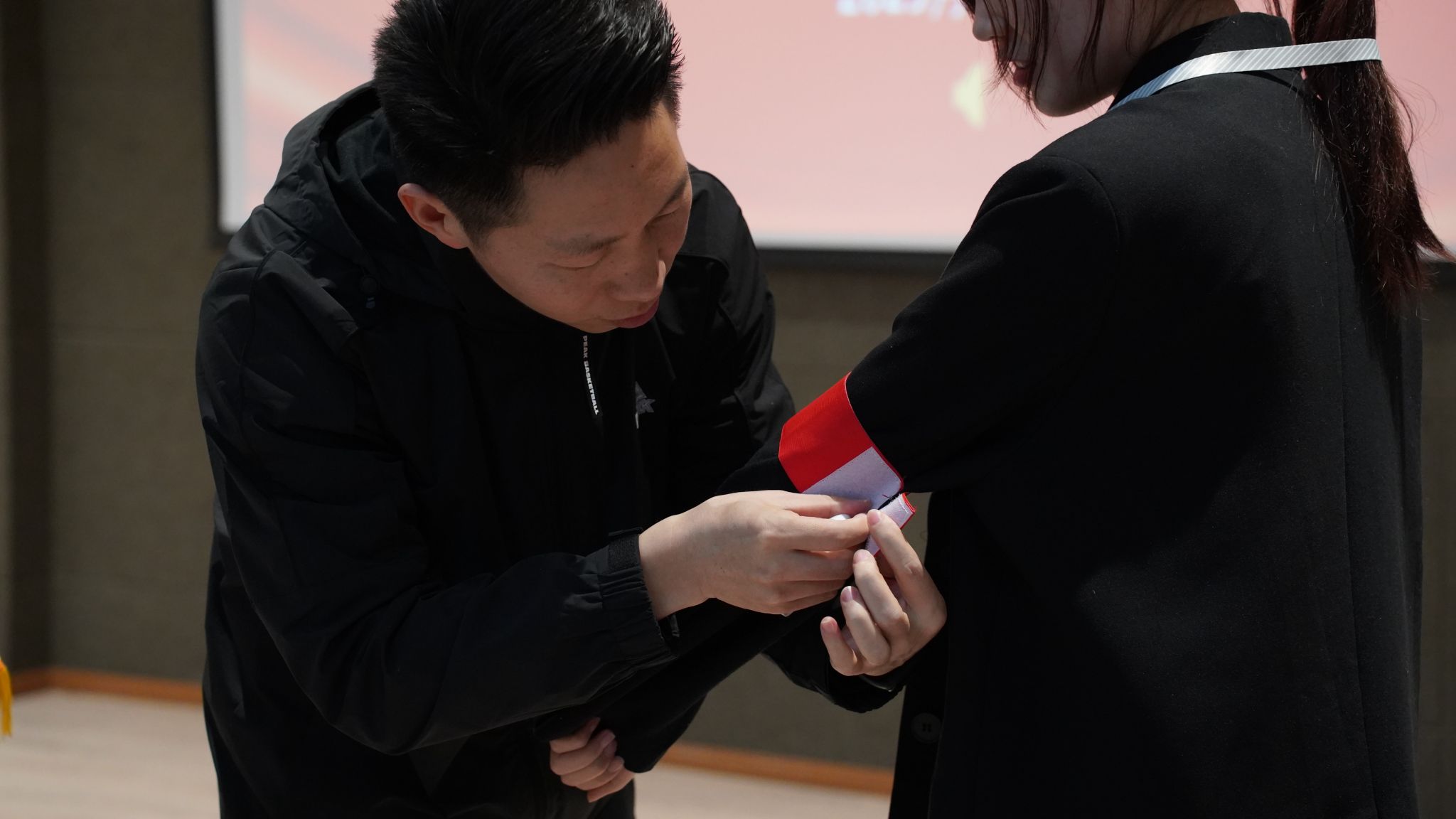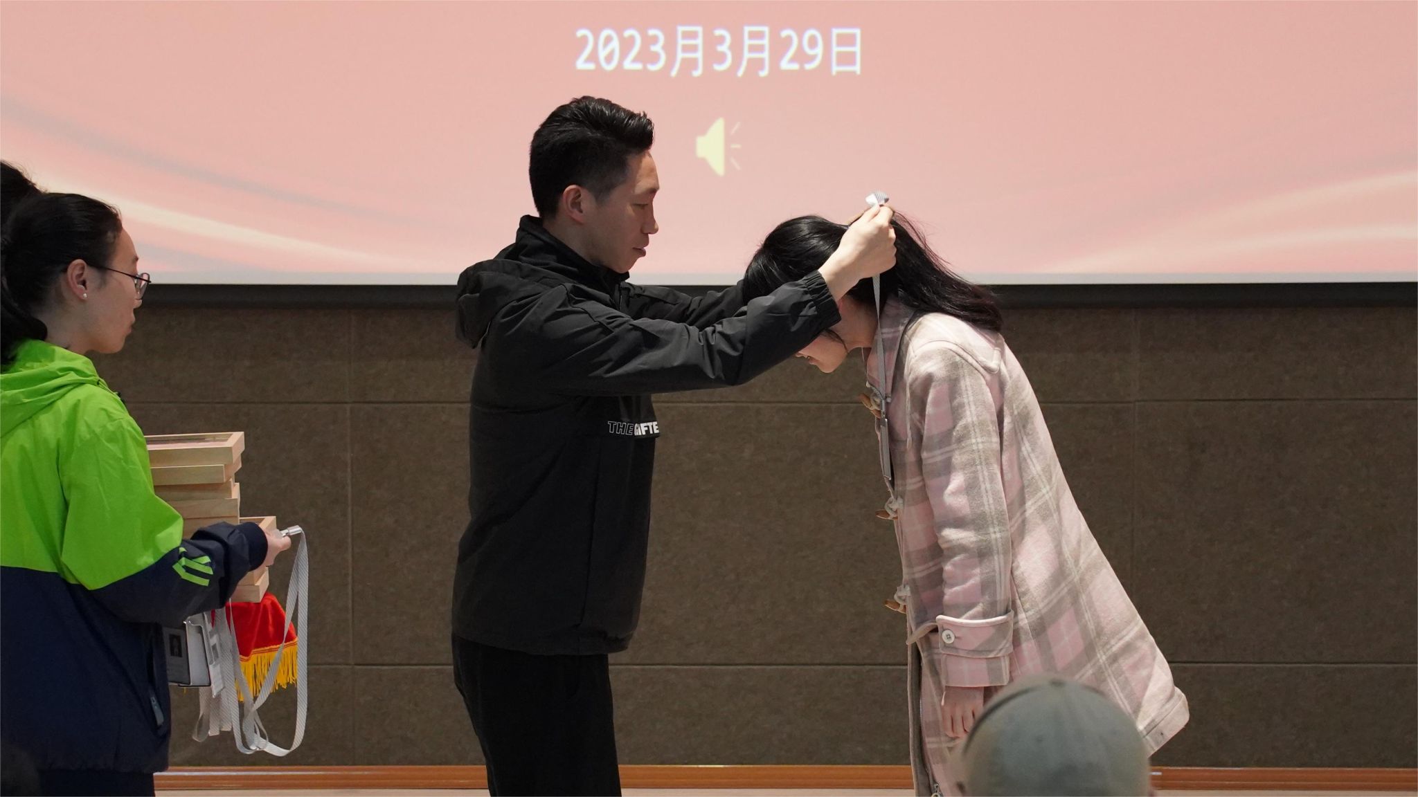在戴上队牌的同时,也担起了一份发展队伍的责任,由艺术传媒学院副院长李克伟老师为队员们颁发体育、艺术专项队伍的队牌以及纪念相框,并且为各队伍的队长佩戴队长袖标。