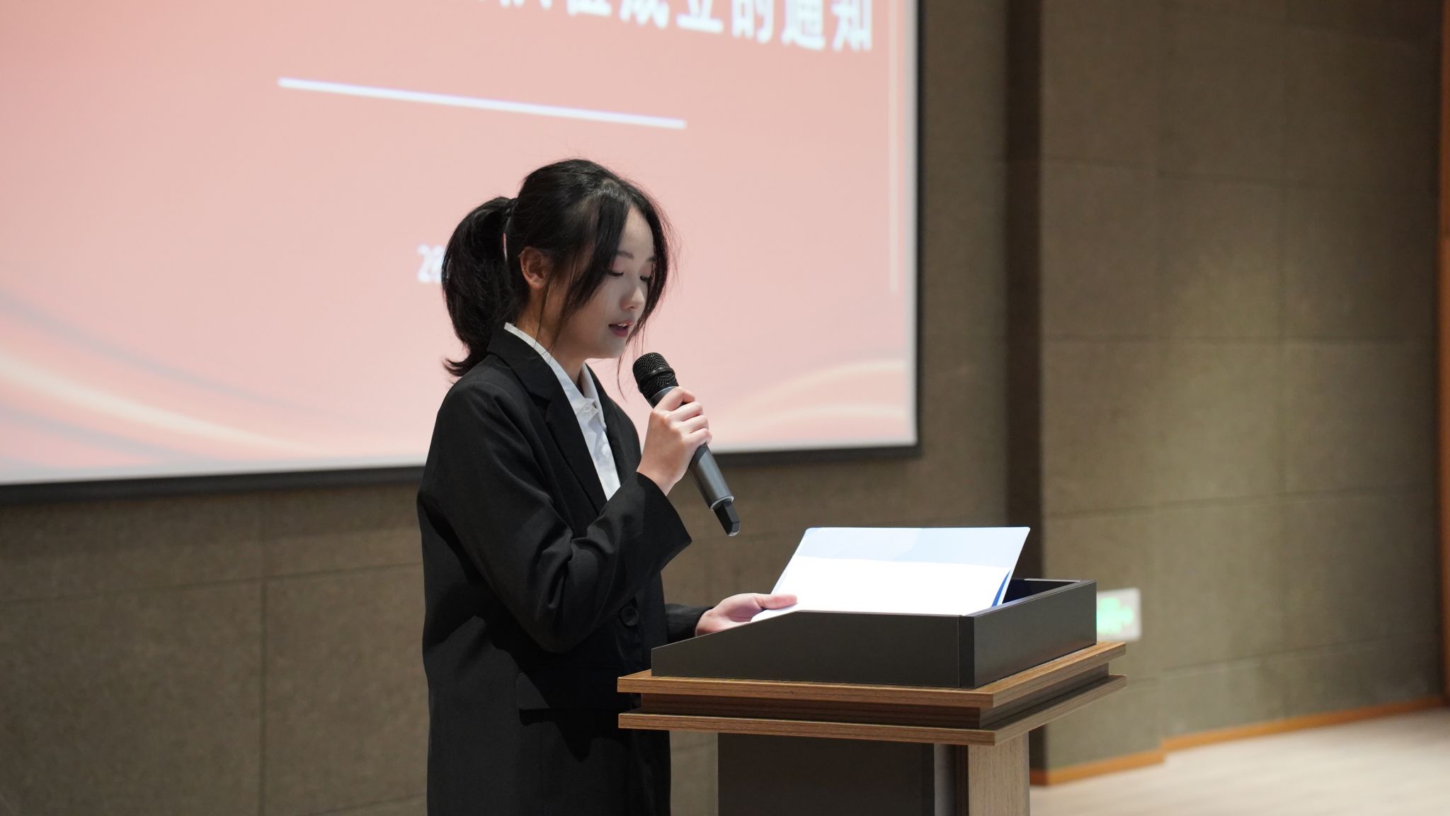 肩负使命,坚定前进信心,不怕困难险阻,勇毅前进,艺术传媒学院团总支书记安珈璇老师宣读了《重庆移通学院艺术传媒学院2023年体育、艺术专项队伍成立的通知》。