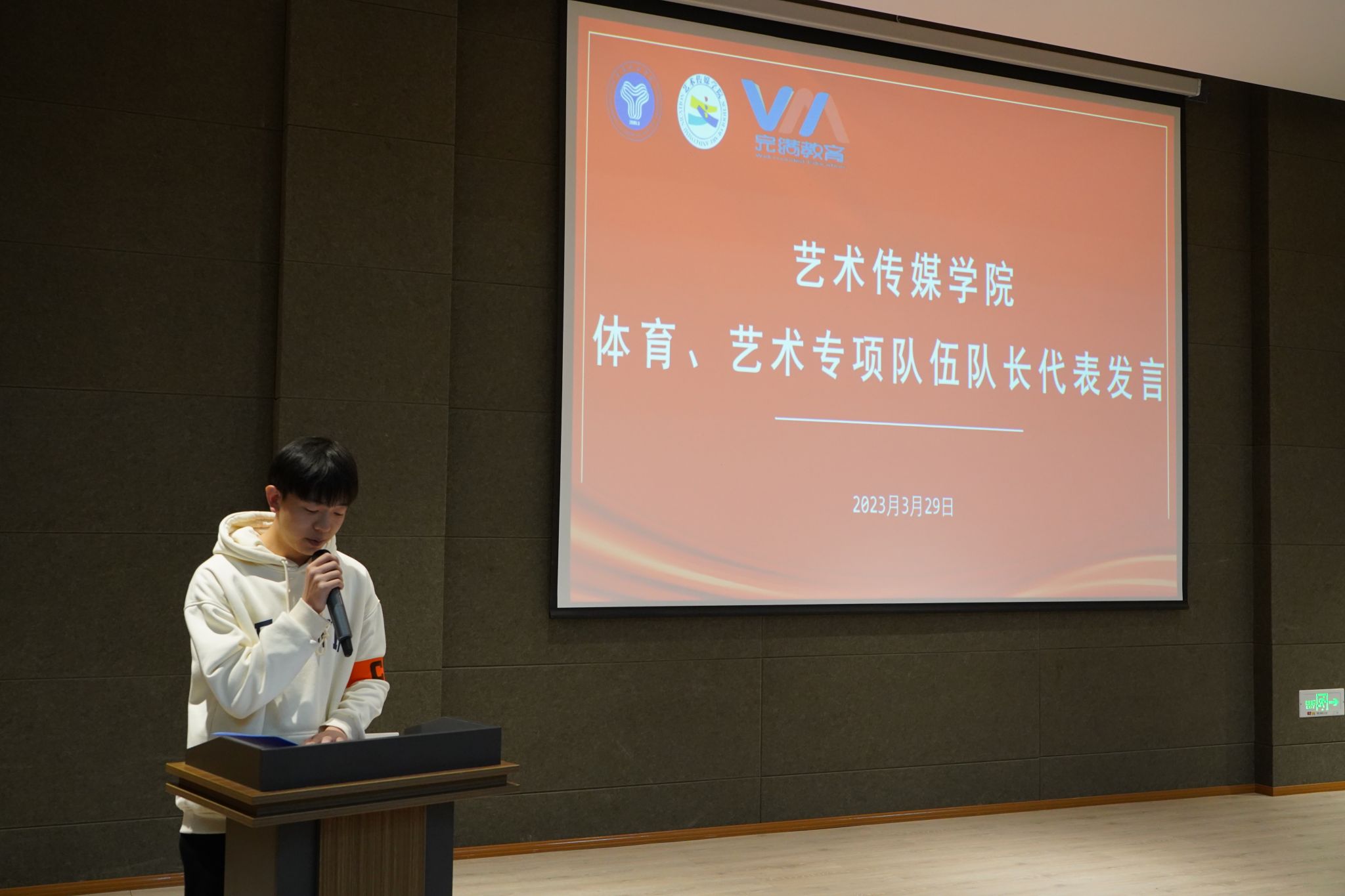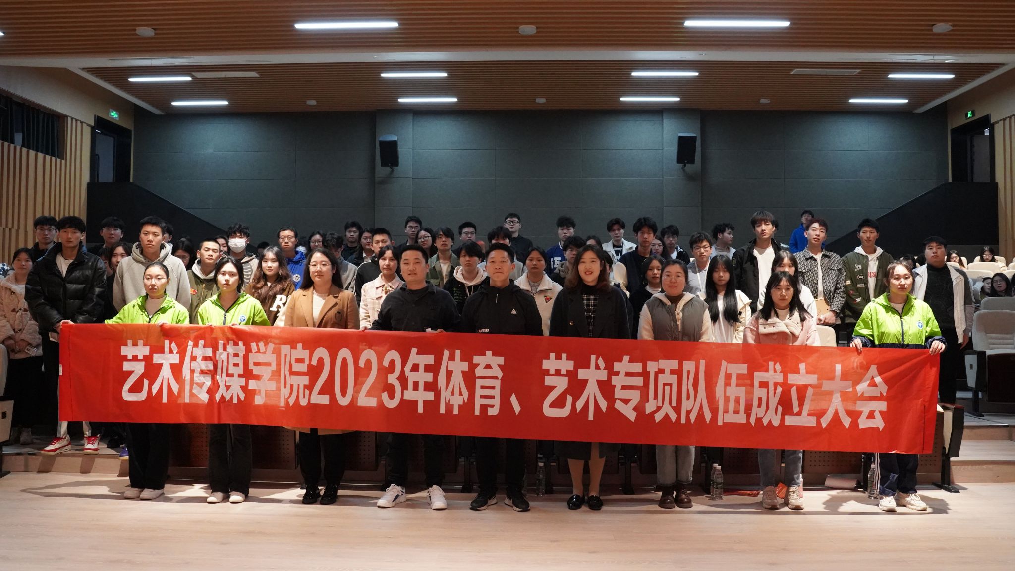 3月29日14:00,艺术传媒学院2023年体育、艺术专项队伍成立大会艺术于学校六度空间无限多功能厅如期举行。