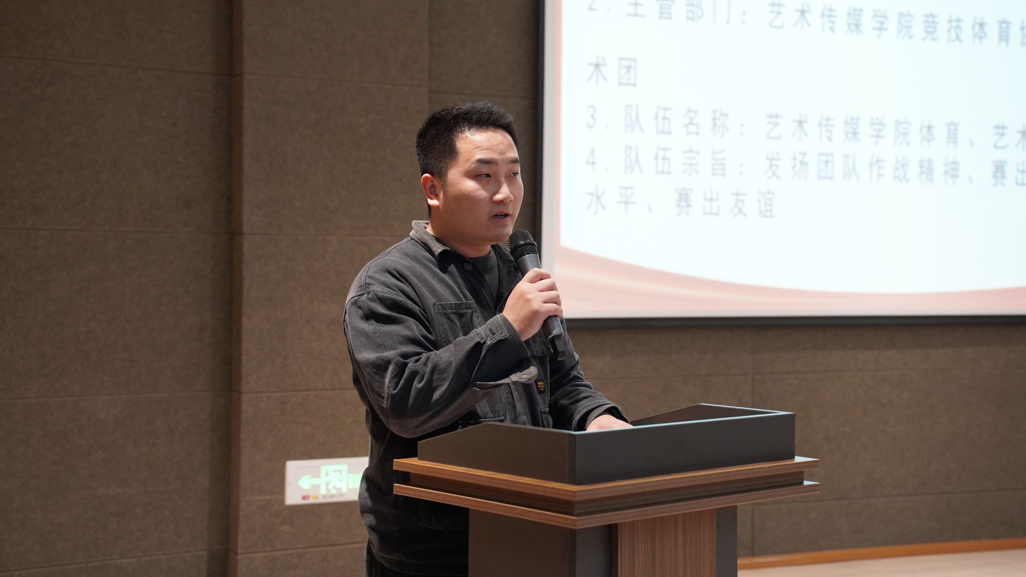 艺术传媒学院体育、艺术工作的开展,离不开队员们的努力与付出。由专项队伍队长代表杨治豪同学交流分享,与师生们分享自己在队伍的成长与所得。