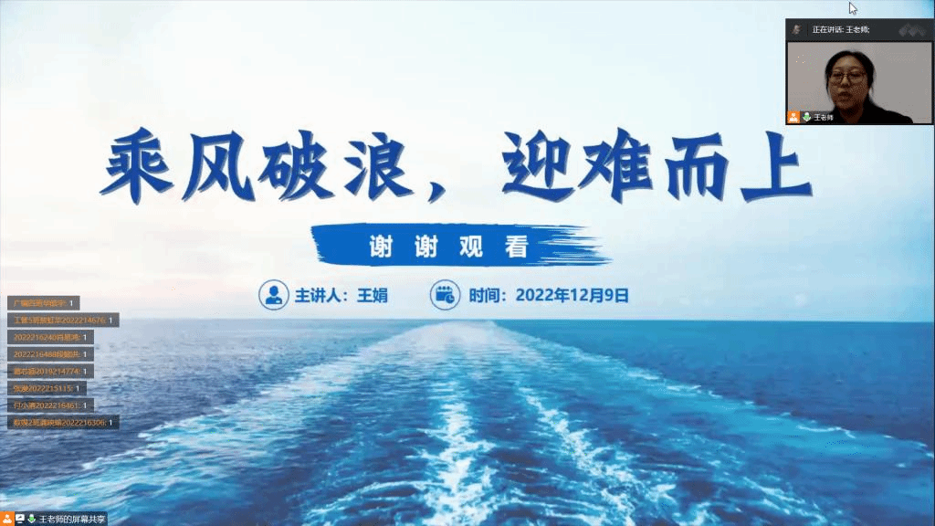 王老师的分享结束后进入了提问环节,同学们都积极地与老师互动,有多名同学提出自己对于就业的困惑,王老师都非常耐心地一一解答。其中有位同学的问题较为典型,他问道:“在就业方面遭受了巨大的打击,我们要怎么重新拾起自己的信心呢?”王老师非常暖心地安慰此同学,她表示现在工作无论是就业还是创业都会遇到很多困难,也会受到很大的打击,但是贵在坚持,只要朝着一个目标不断努力,终有一天会实现自己的理想。会议结束后不少同学表示收获丰富。