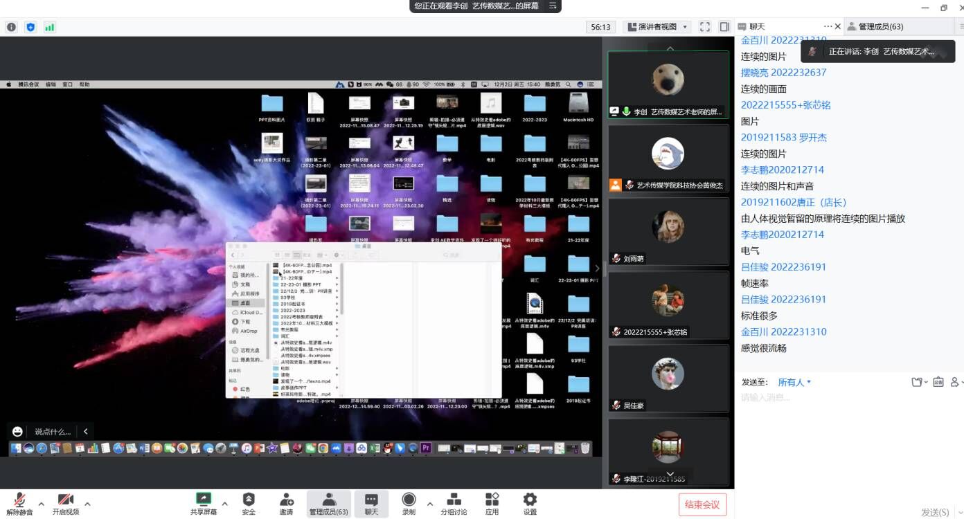 为提升我校学子综合审美素养,帮助学生群体进一步了解掌握后期剪辑知识。2022年12月2日,由重庆移通学院校学生会科技活动部主办、艺术传媒学院学生会科技协会承办的以“智慧影像,创享美好”为主题的PR软件讲座成功举办。本次活动以线上形式展开,面向全校师生,并邀请到艺术传媒学院李创老师作为主讲人,参与覆盖率达63人次。