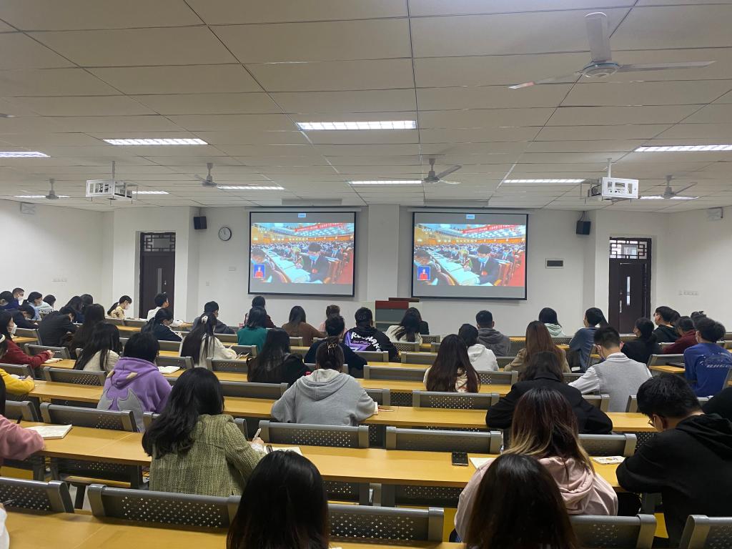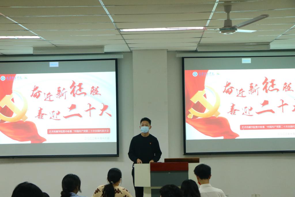 2022年10月16日上午10点,艺术传媒学院党总支通过集中加分散的方式收看党的二十大开幕会,集中收看在天空书院205教室。本次活动参与人员为学院师生党员、发展对象与学生代表共计98人。
