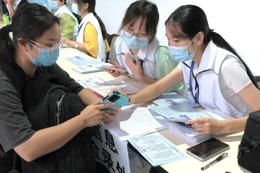 天空不作美,下起小雨但丝毫浇不灭工作人员的态度和决心。没有雨伞,志愿者就穿上雨衣在学校穿梭,走遍校园为新生护送行李。部分志愿者为新生指路解惑,其他则带领新生去大门盖章查验,从查看录取通知书到最后签字检查,工作人员始终以饱满的精神状态去解答新生的问题,并提示新生开学期间应该注意的重点,提醒同学们在校期间要做好个人的疫情防控,按照学院要求及时做核酸、汇报个人身体健康状态。