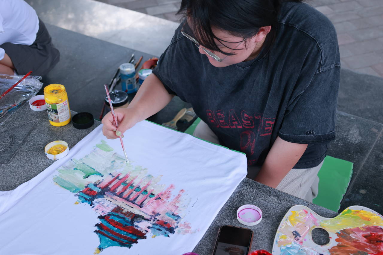 美益乡村”文化艺术服务团于2022年6月27日下午15:008在先锋剧场“举办“妙笔生画,艺彩生衣”文化衫制作活动。以艺术激情冲破主题,让色彩颜料融入衣衫,激发同学们交流、创作、合作激情。