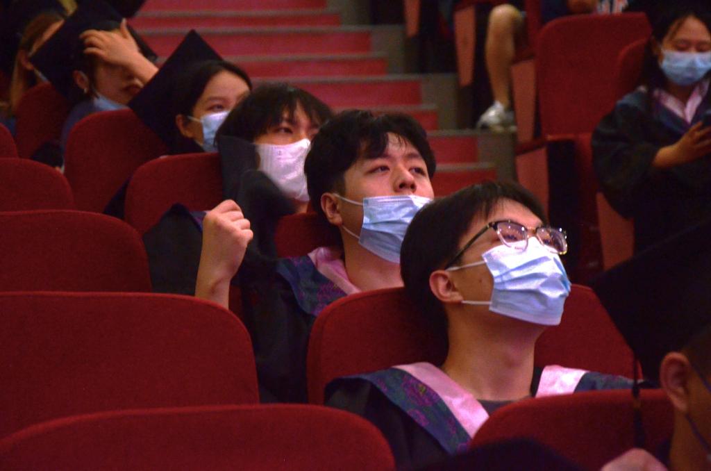 在正式典礼开始之前,与会人员观看毕业生祝福VCR,视频凝聚2022届毕业生点点滴滴,记录大家从青涩走向成熟的每一个细节,编写大家对校园一草一木的眷恋及对大学生活飞速而逝的感慨。学校领导、老师、同学们也在专题片里为本届毕业生送上了真挚祝福,每一帧每一镜都是对毕业学子的真切祝愿。