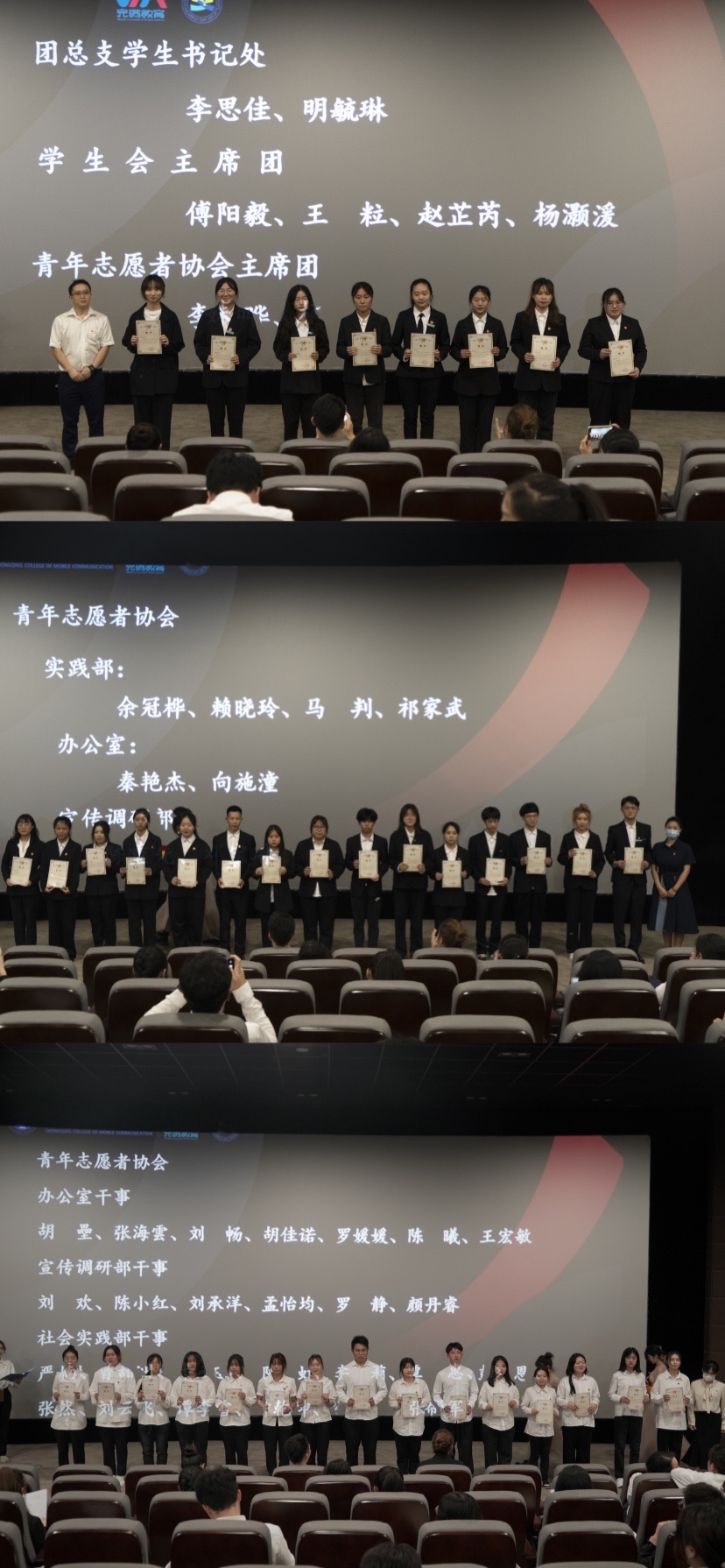 至此艺术传媒学2021-2022学年完满教育工作总结暨表彰大会画上了圆满的句号。感谢学院第三届第一任全学生组织体干部干事的辛勤付出,让我们从此开启新的篇章!希望学院第三届第一任三学生组织的成员们不忘初心,砥砺前行,将奋斗作为青春最亮丽的底色!