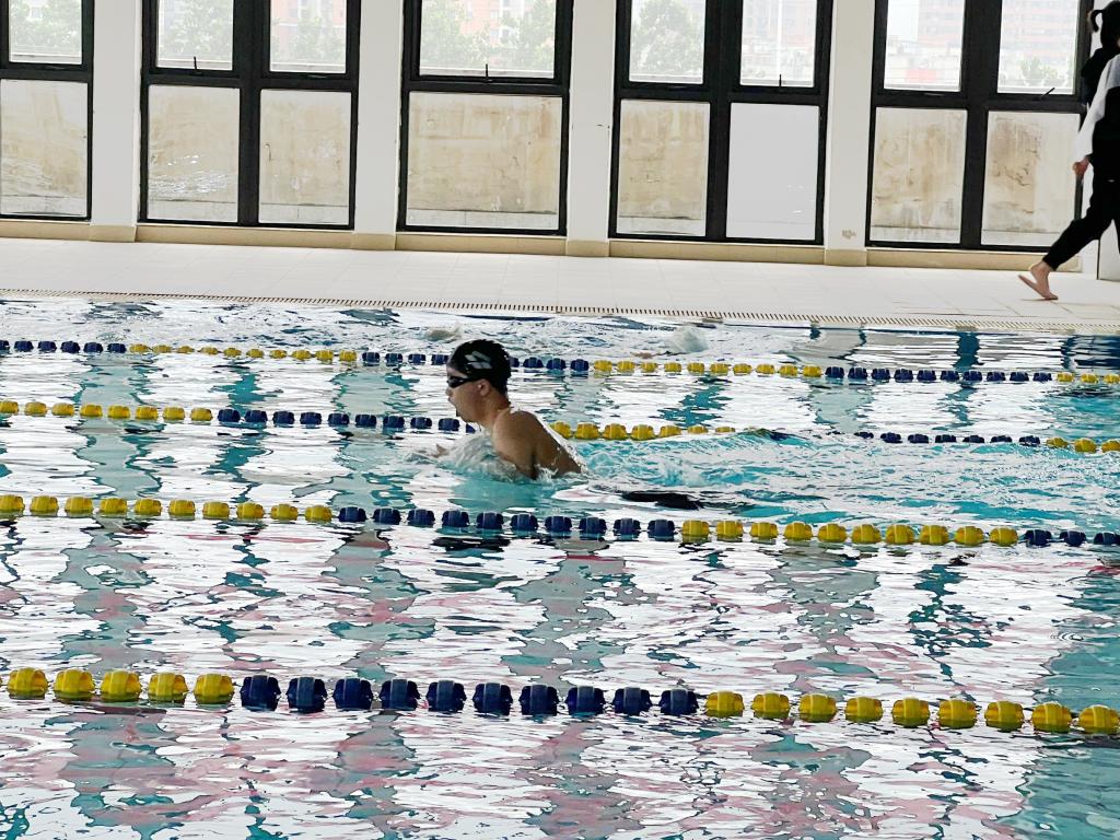 在适应完毕后,谢宇轩开始对他们比赛项目进行计时训练,分别进行50米自由泳和蛙泳。首先开始的是蛙泳比赛,外划、内划、前伸、收腿、翻脚、蹬水、滑行,运动员每一个动作都标准至极。随后的自由泳及仰泳比赛,每个运动员都奋力拼搏,每一个动作都矫健有力。自由泳考验着运动员的耐力,每一次摆臂,每一次蹬水都是对体力的极大挑战,但运动员的精神就是坚持到底,无论何时都不轻言放弃。