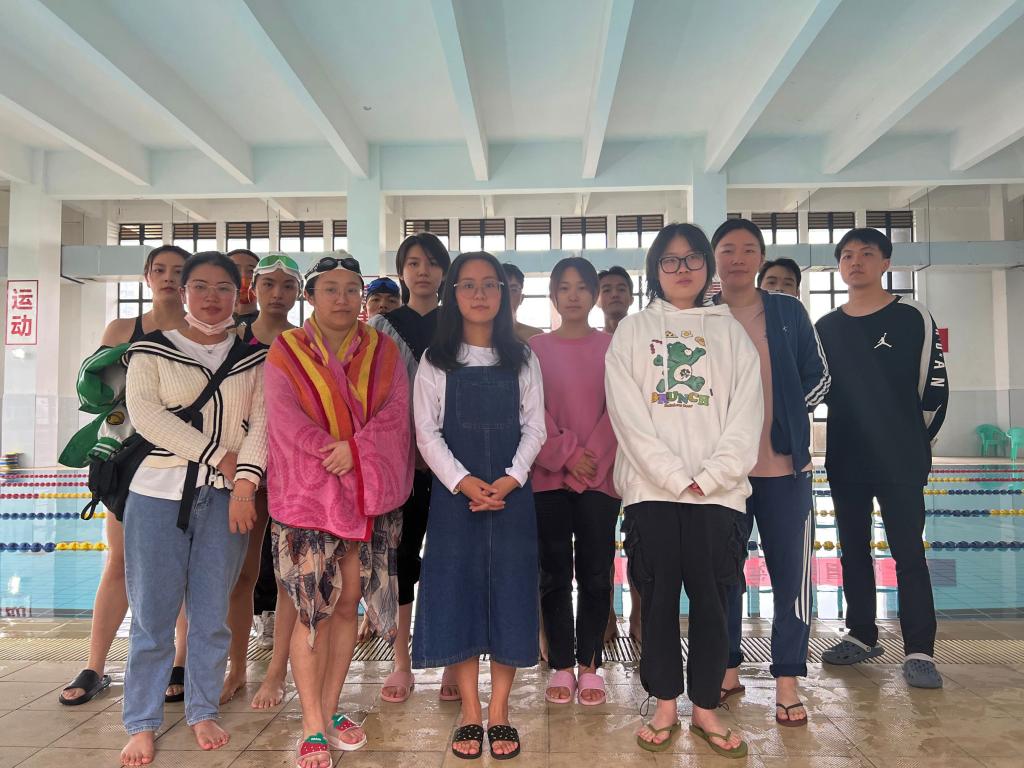 在训练开始前,男队员和女队员们分别进行着装准备,教练讲解注意事项,强调安全第一,并开始了训练前的热身活动。热身运动后,大家便一个个有序的进入泳池适应,队员们化身为一个个灵动的音符,伴随着扩散的波纹。