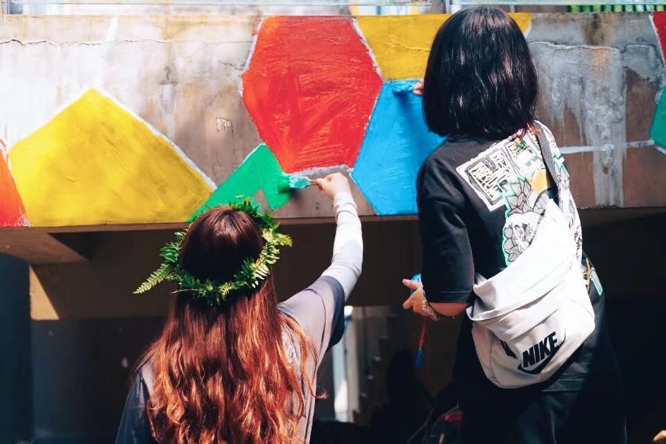 一画一风景,一墙一新意。2022年5月6日星期五下午,汇江书院向艺术传媒学院青年志愿者协会预约的美“益”约彩绘活动,圆满落下帷幕。此次是美“益”约开展的第十期,活动从第一期以来便着力于丰富校园生活,营造浓厚的校园文化氛围,提高大学生艺术修养与审美情趣,也为涂鸦爱好者提供展现自我价值的平台,彰显现代大学生的个性魅力。