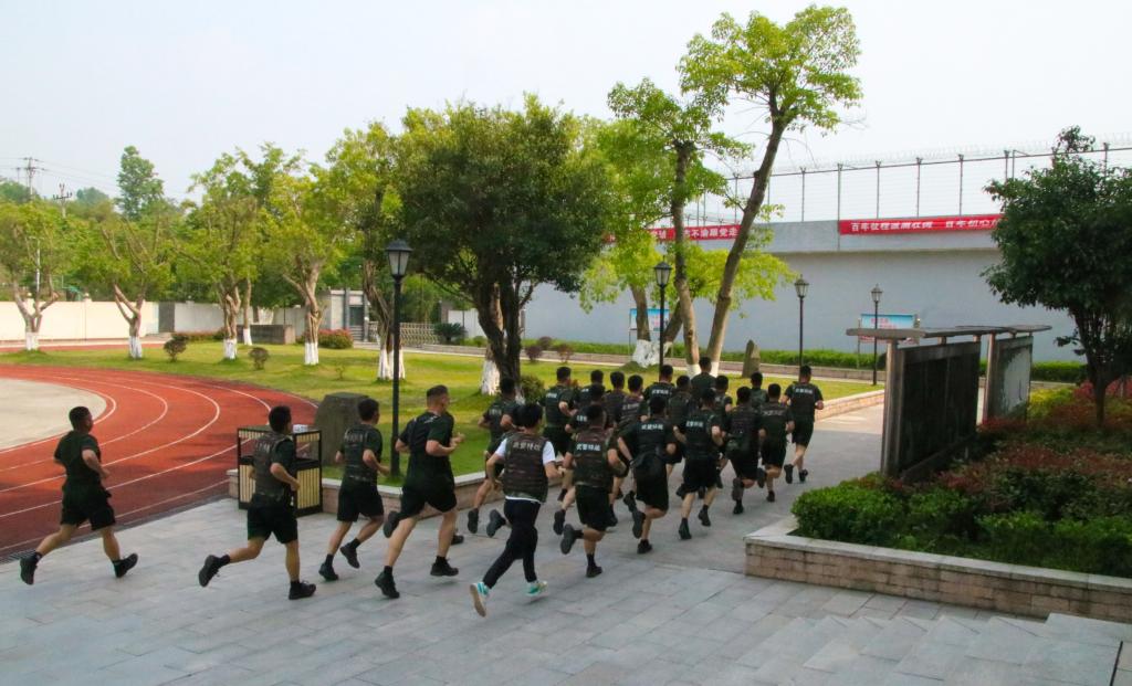 武警中队的室外操场上,是正在进行体能训练的武警战士们,他们衣服湿透,汗流全身,但战斗意志依旧爆棚,他们用铿锵有力的口号声回应人民的期盼。骄阳下的身影,烈日下的赤诚之心值得每个人铭记。