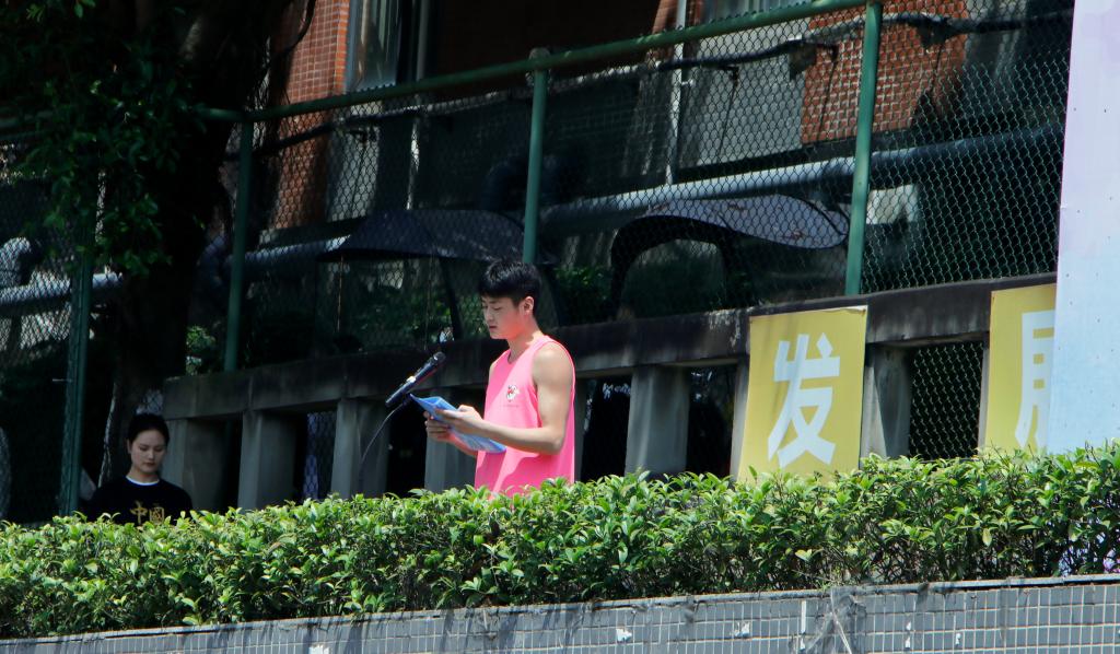 四月的校园,柳绿花红,热闹的操场,日暖风清。2022年4月20日下午,重庆移通学院第十四届运动会如期而至。下午14时,开幕式在田径场举行,计时裁判长桑美玲讲话、运动员代表韩旭发言。